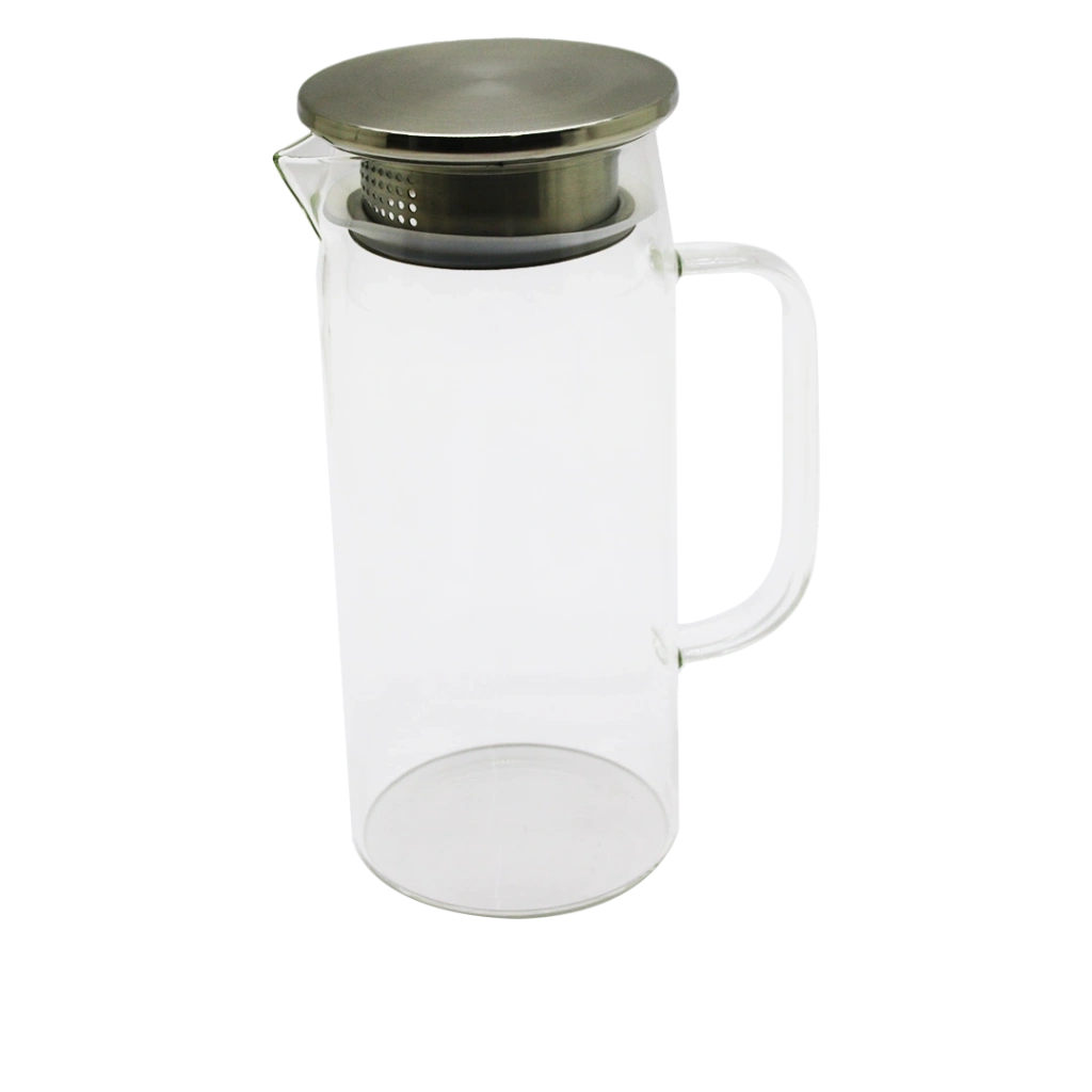 1.2lt - Yuvarlak Cam Sürahi - Süzgeçli Metal Kapak Borosilikat - Termisil Isıya Dayanaklı (4172)