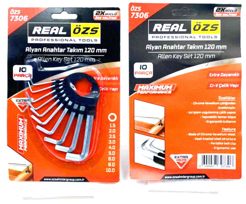 10 PARÇA KARTLI ALYAN ANAHTAR TAKIM SETİ120MM-NO-1.5-10