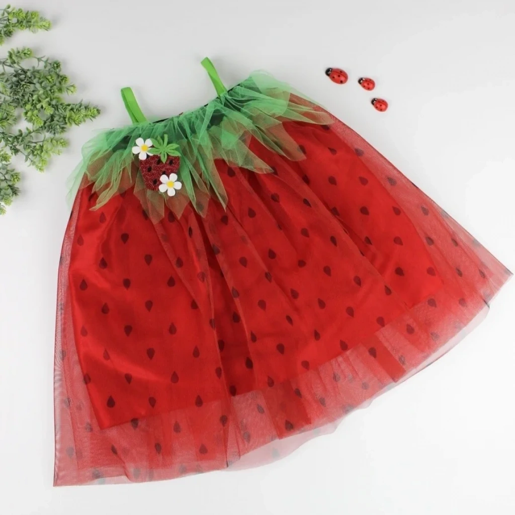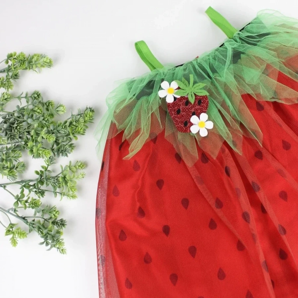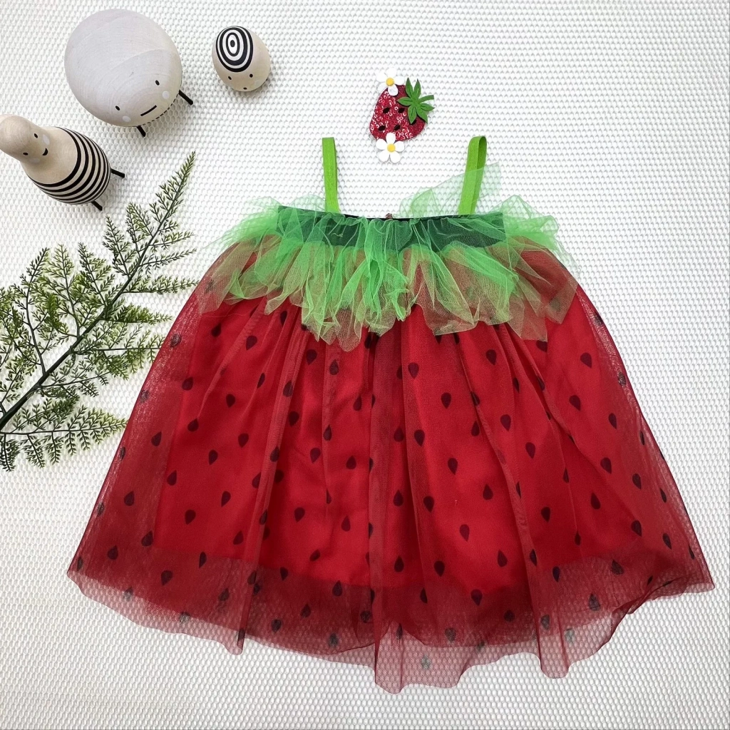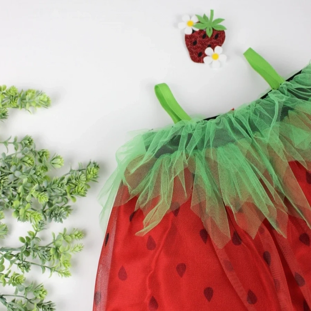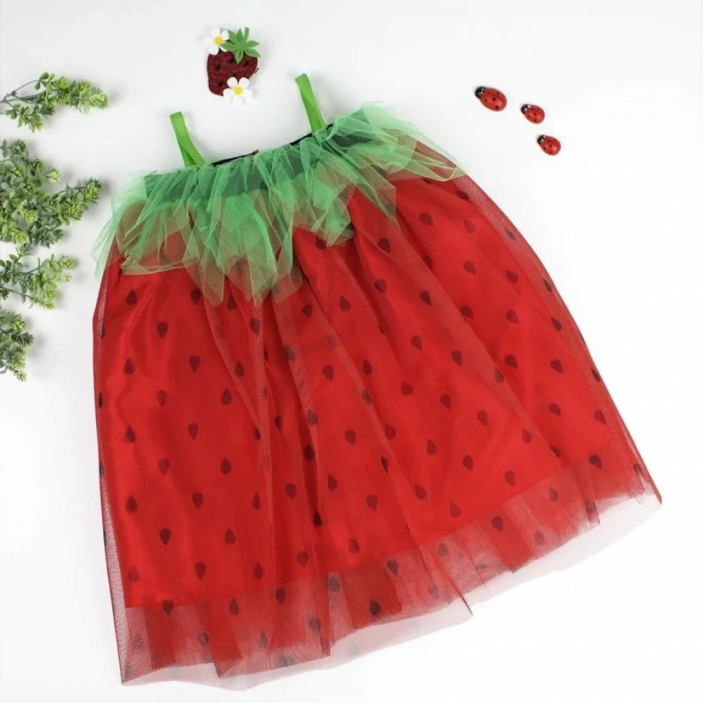 • 2-3-4 Yaş Askılı Çilek Kostüm Kız Çocuk Elbise
