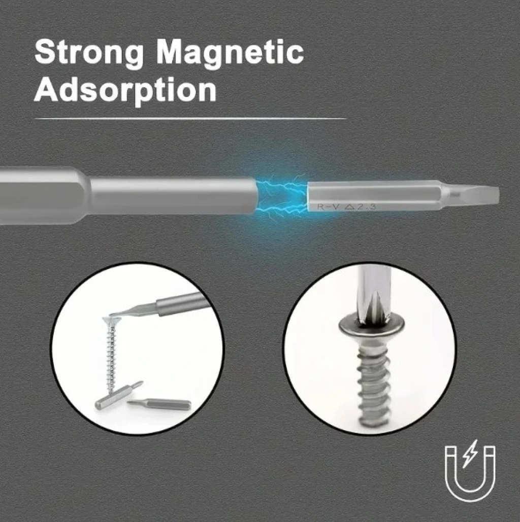 1.24-in-1 tornavida seti: bu Set 24 farklı tornavida ucu içerir, bu da çok yönlü ve çeşitli görevler için uygundur. Cep telefonları, gözlükler, kameralar, saatler ve diğer ev eşyalarını onarmak için özelleştirilebilir.