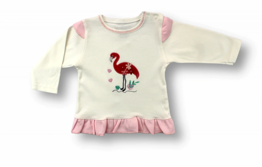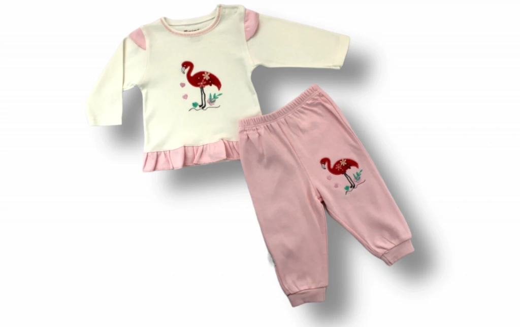 • 3-6 6-9 9-12 Ay Flamingo Nakışlı Uzun Kollu Sweatli 2li Kız Bebek Takımı
