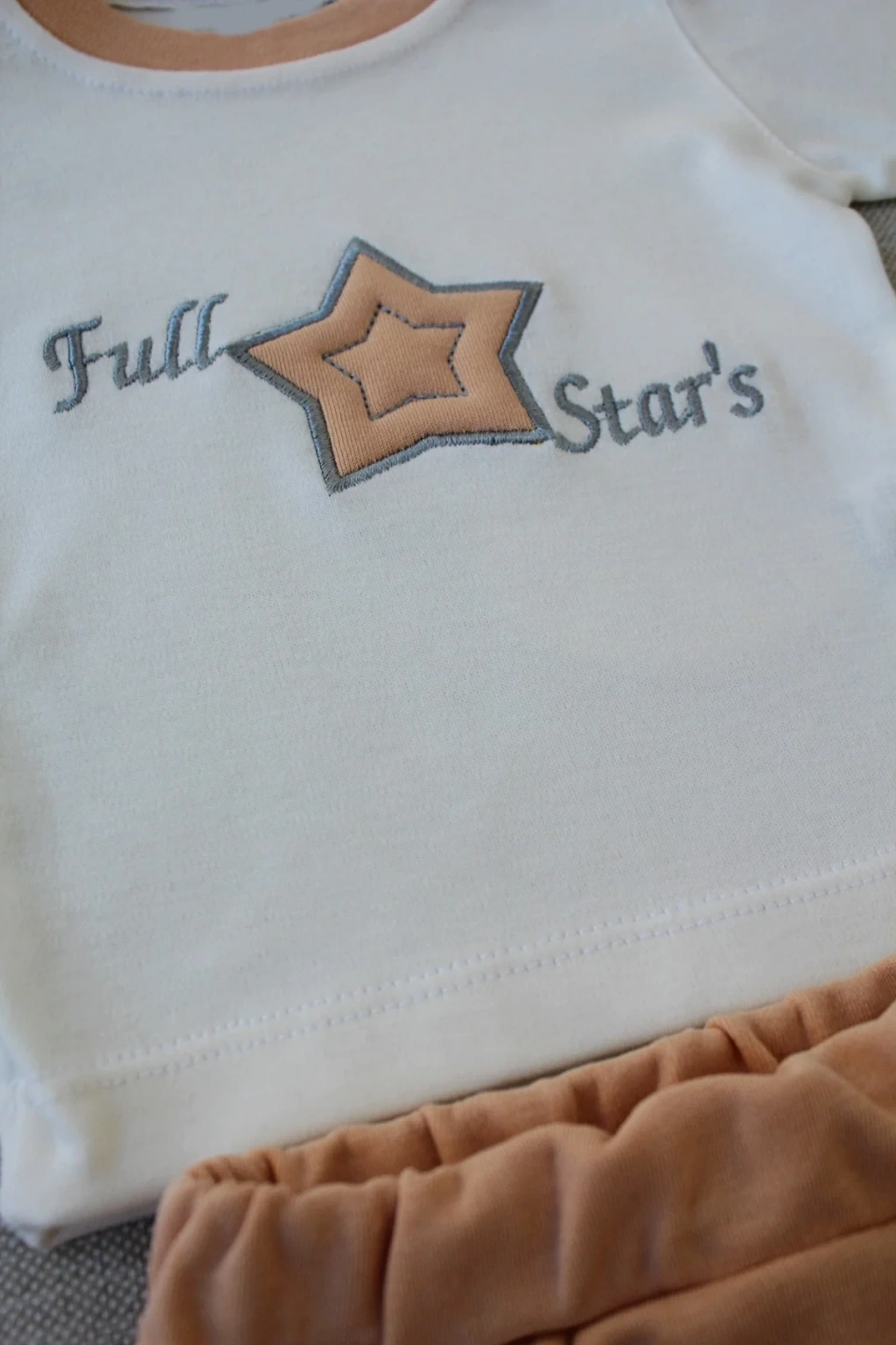 3-6 6-9 9-12 Ay Full Star Nakışlı Şapkalı Uzun Kollu Sweat 3lü Erkek Bebek Takımı Buğday