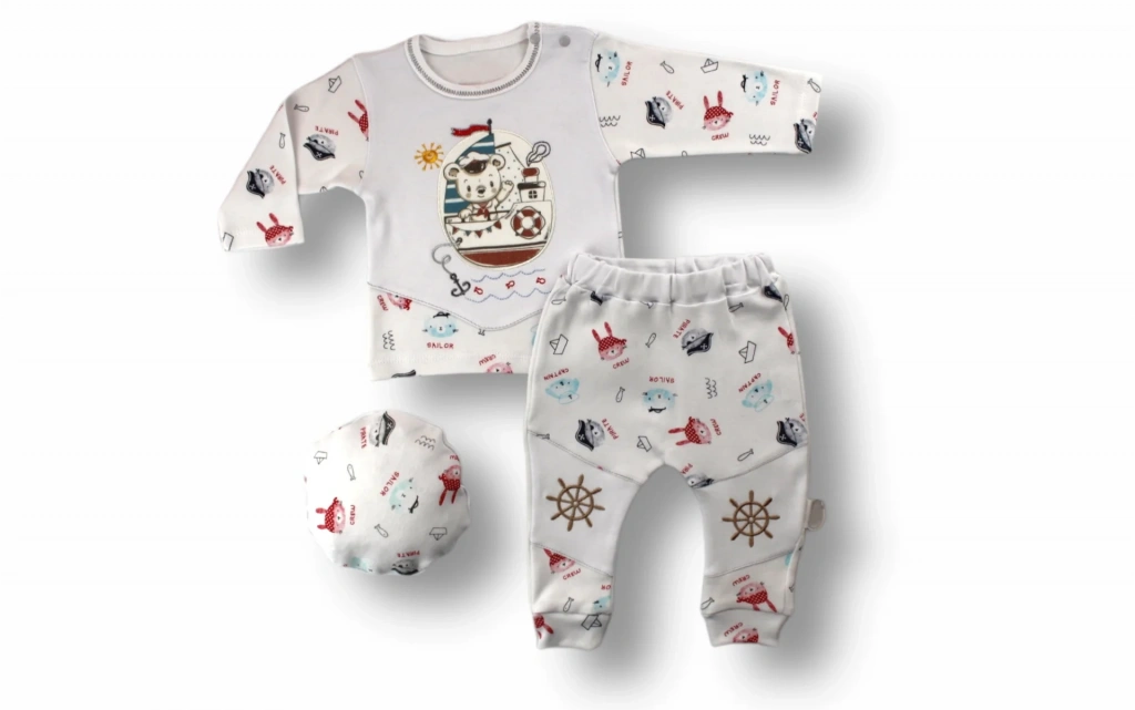 • 3-6 6-9 9-12 Ay Minik Korsan Nakışlı Şapkalı Uzun Kollu Sweatli 3lü Kız-erkek Bebek Takımı