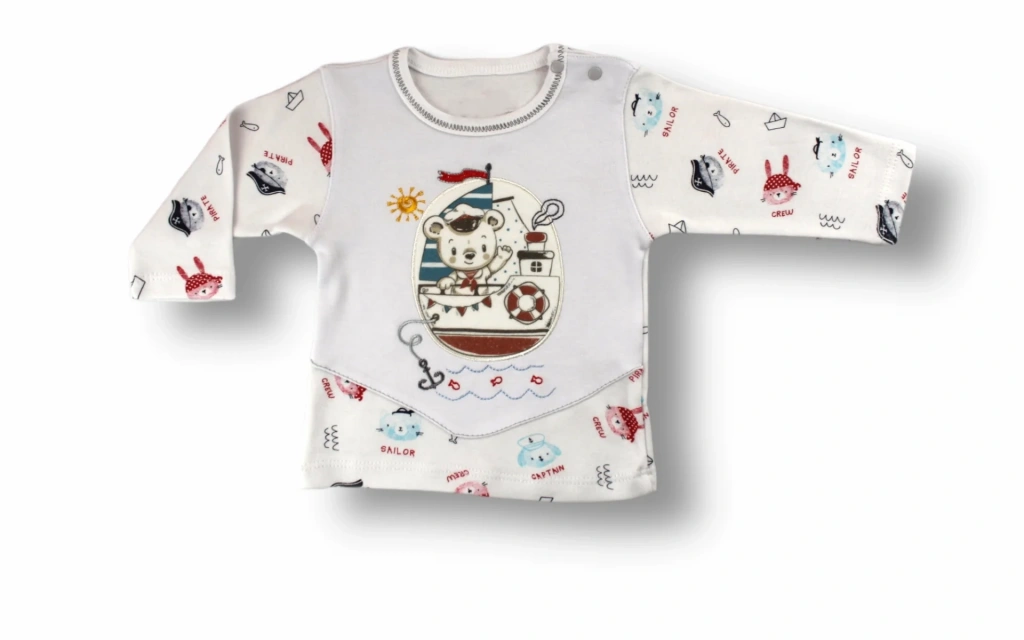 3-6 6-9 9-12 Ay Minik Korsan Nakışlı Şapkalı Uzun Kollu Sweatli 3lü Kız-erkek Bebek Takımı Ekru