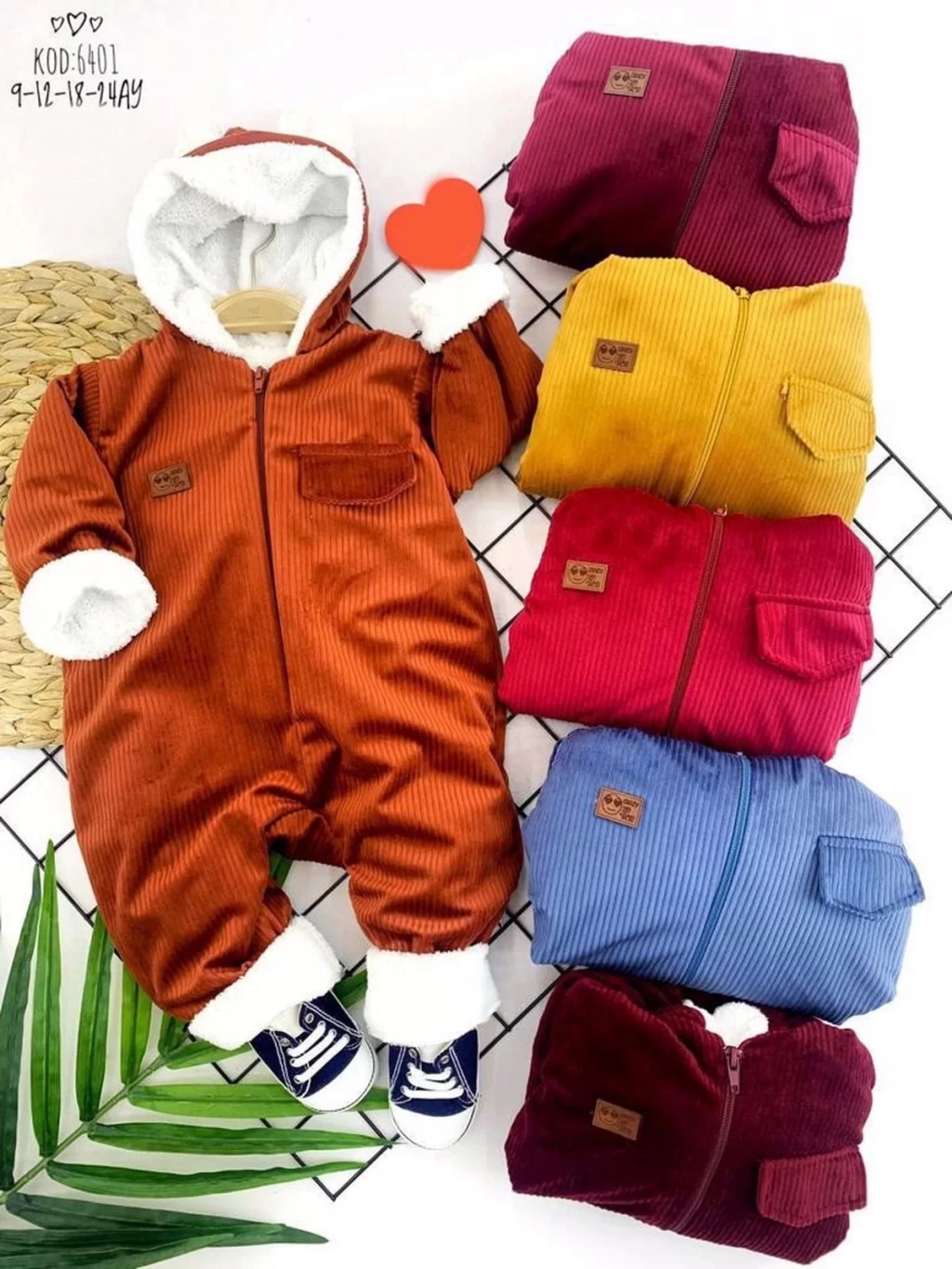 • 3-6-9-12 Ay Fermuar Kapamalı Kadife Kumaş İçi Tüylü Kız Erkek Bebek Tulumu