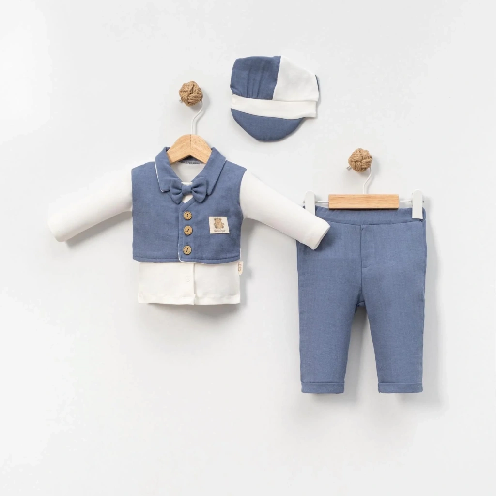 • 6-9-12-18 Ay Yelek Detaylı Kasketli Uzun Kollu Mevsimlik 3 Lü Erkek Takımı