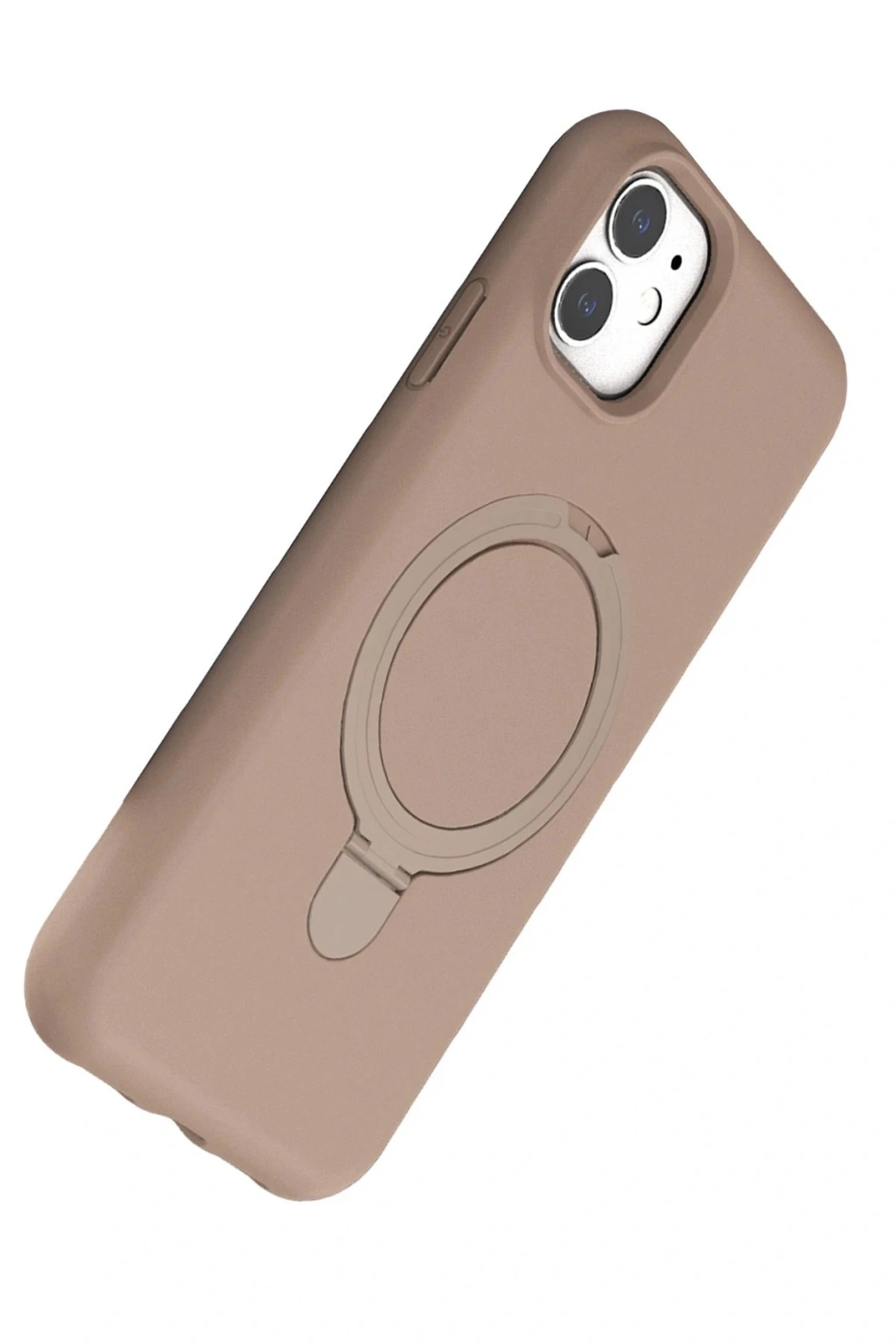 Apple iPhone 11 Regal Magsafe Standlı Kapak - Çöl Titanyum