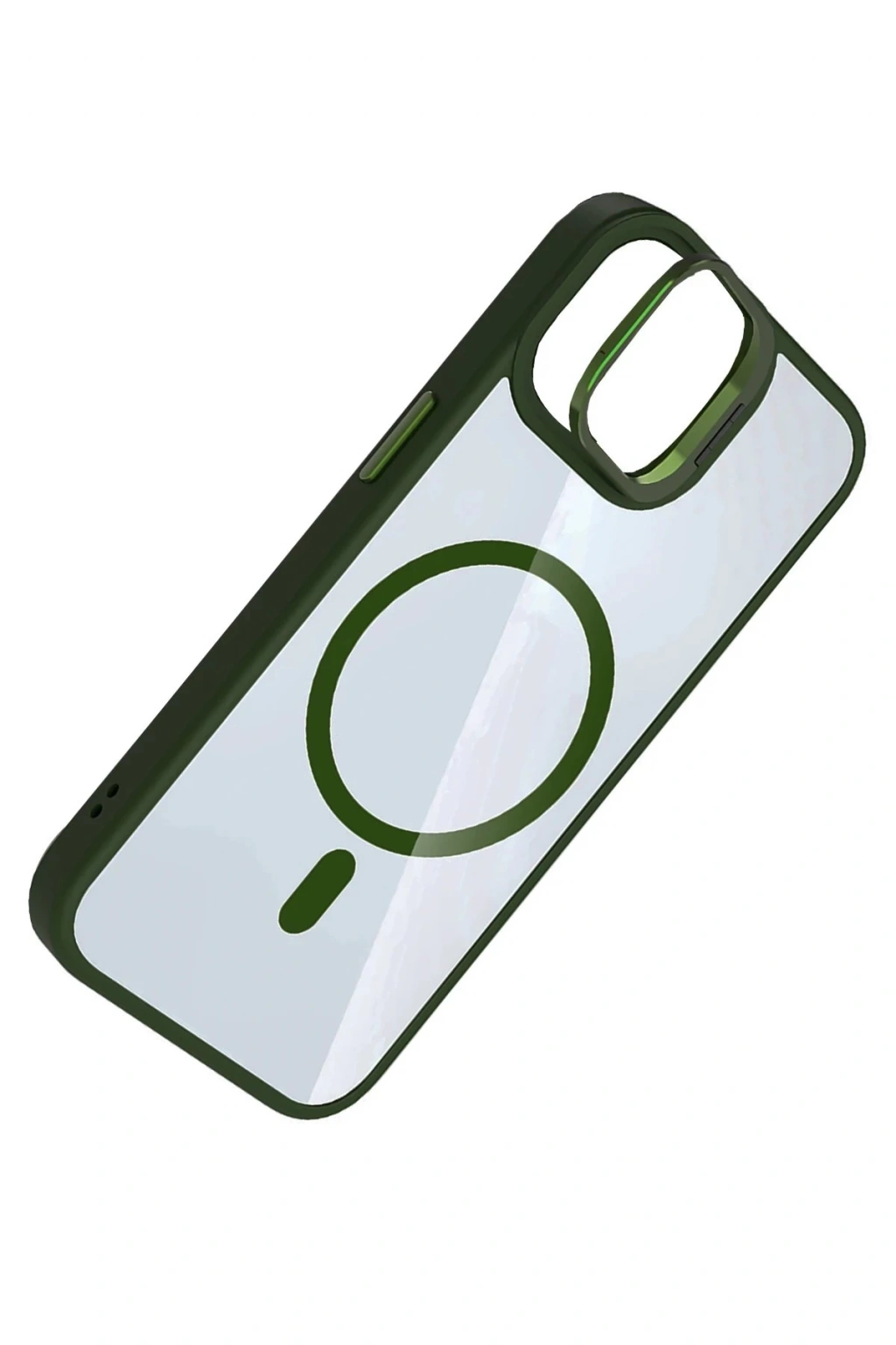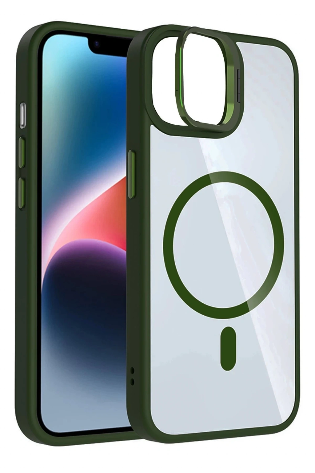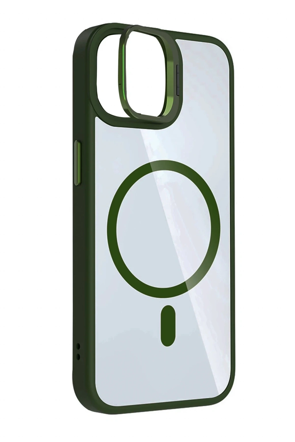Apple iPhone 11 Remim Lensli Magsafe Standlı Kapak - Koyu Yeşil
