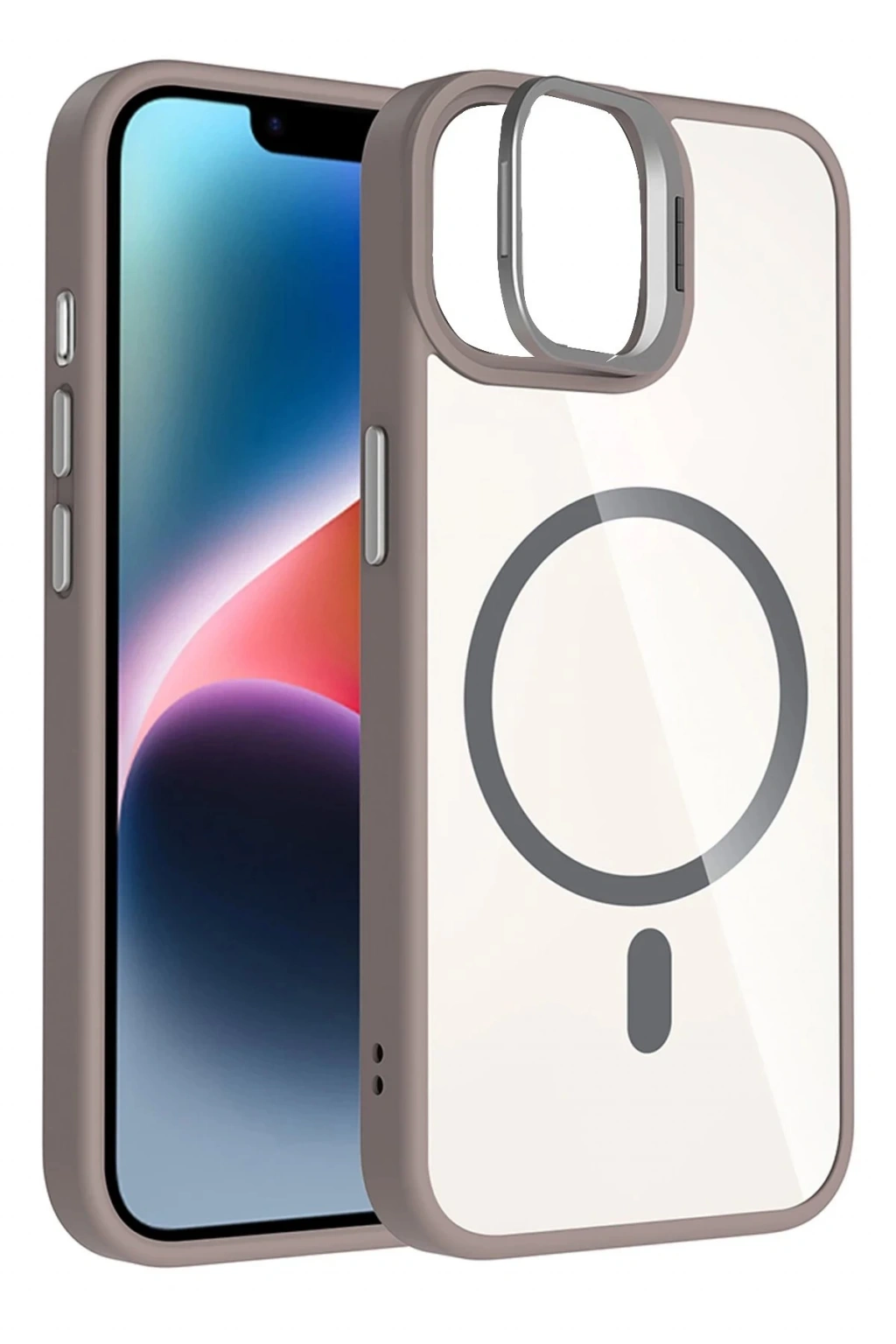 Apple iPhone 11 Remim Lensli Magsafe Standlı Kapak - Titan Gri