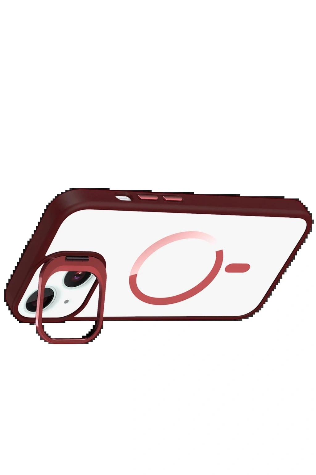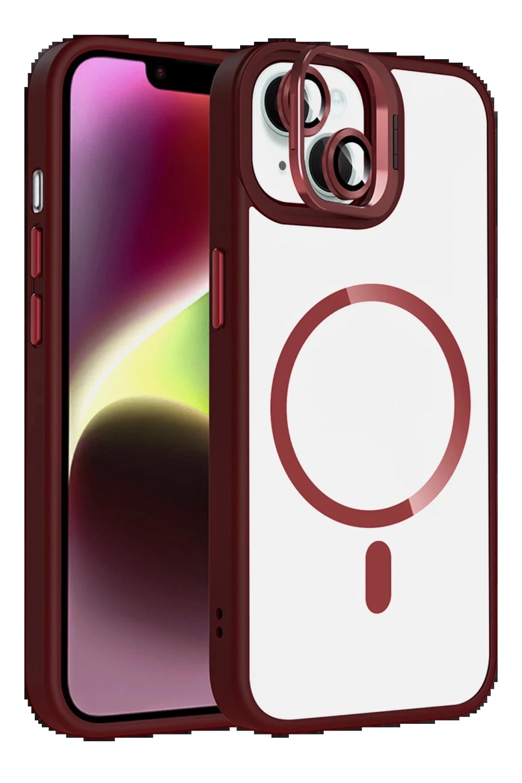 Apple iPhone 13 Remim Lensli Magsafe Standlı Kapak - Bordo