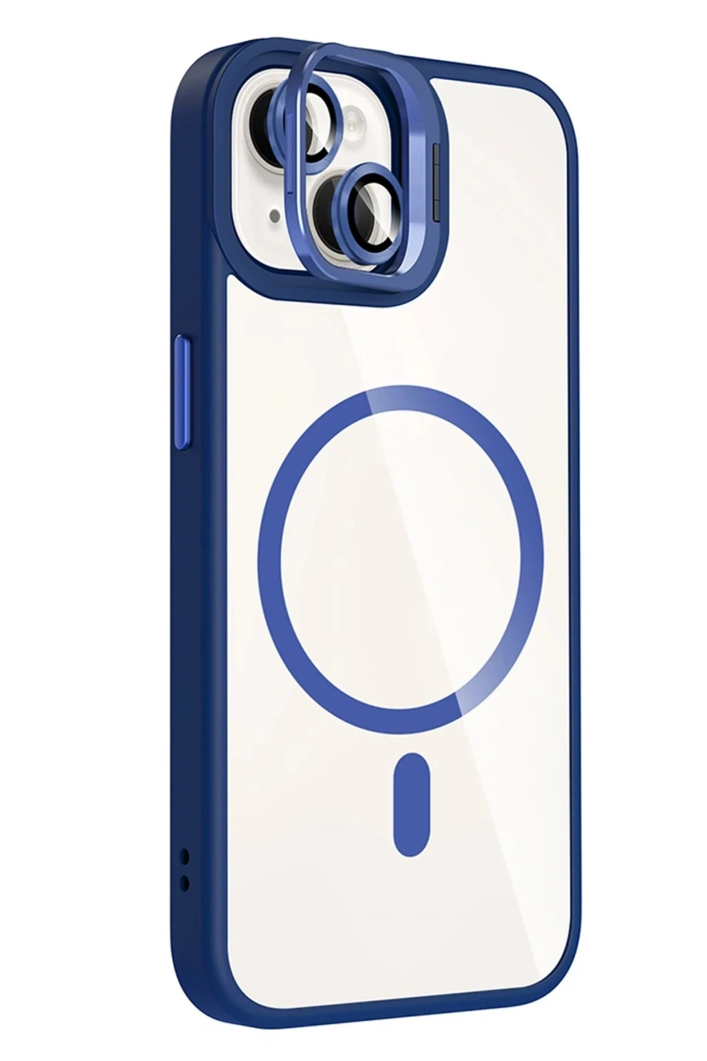 Apple iPhone 15 Plus Remim Lensli Magsafe Standlı Kapak - Lacivert