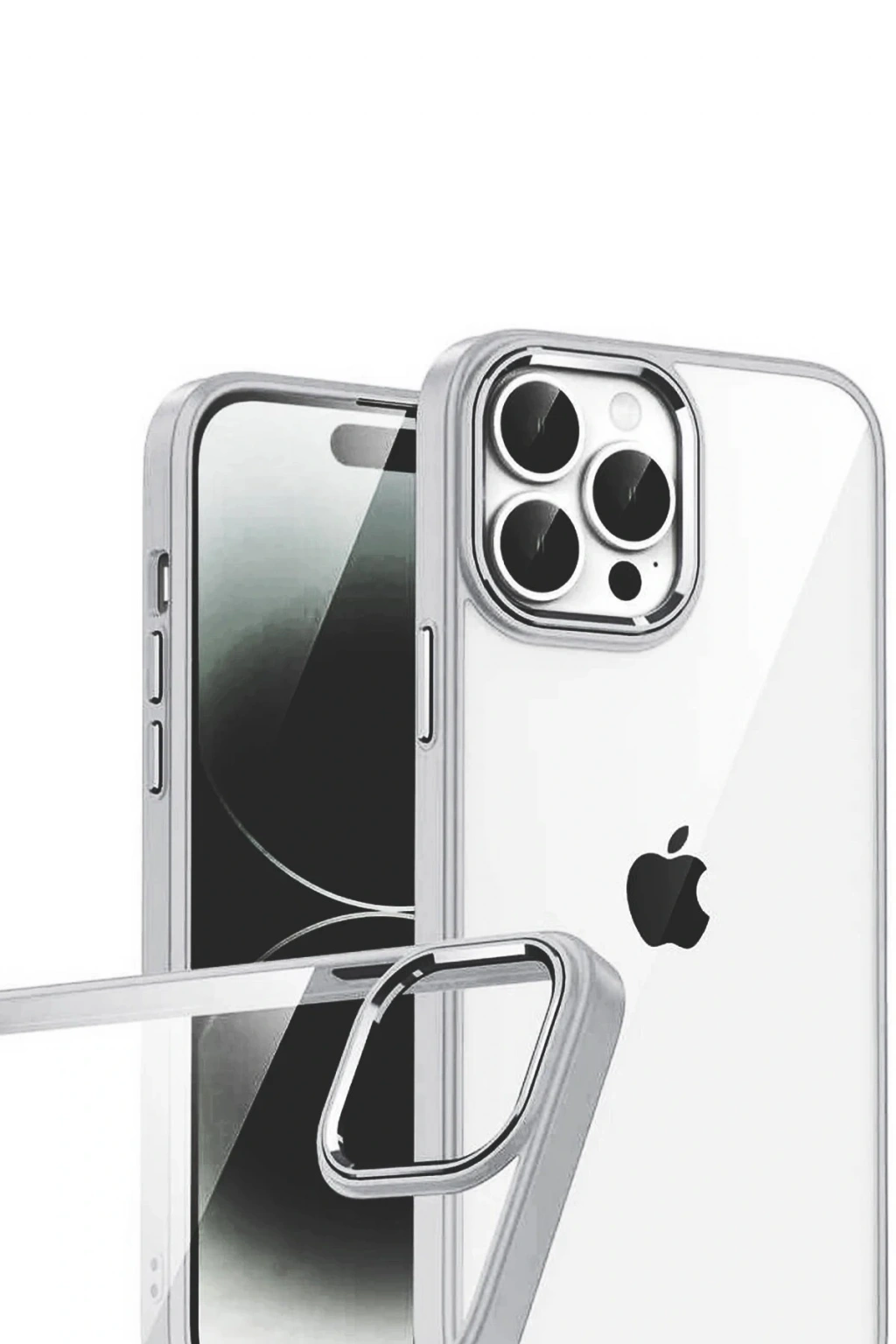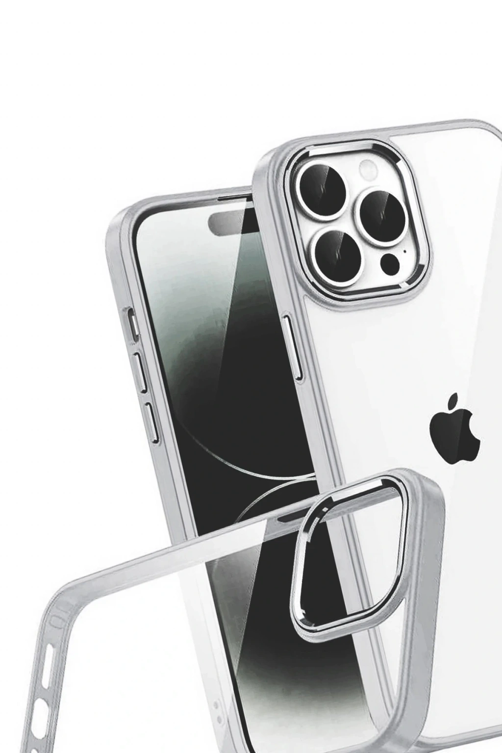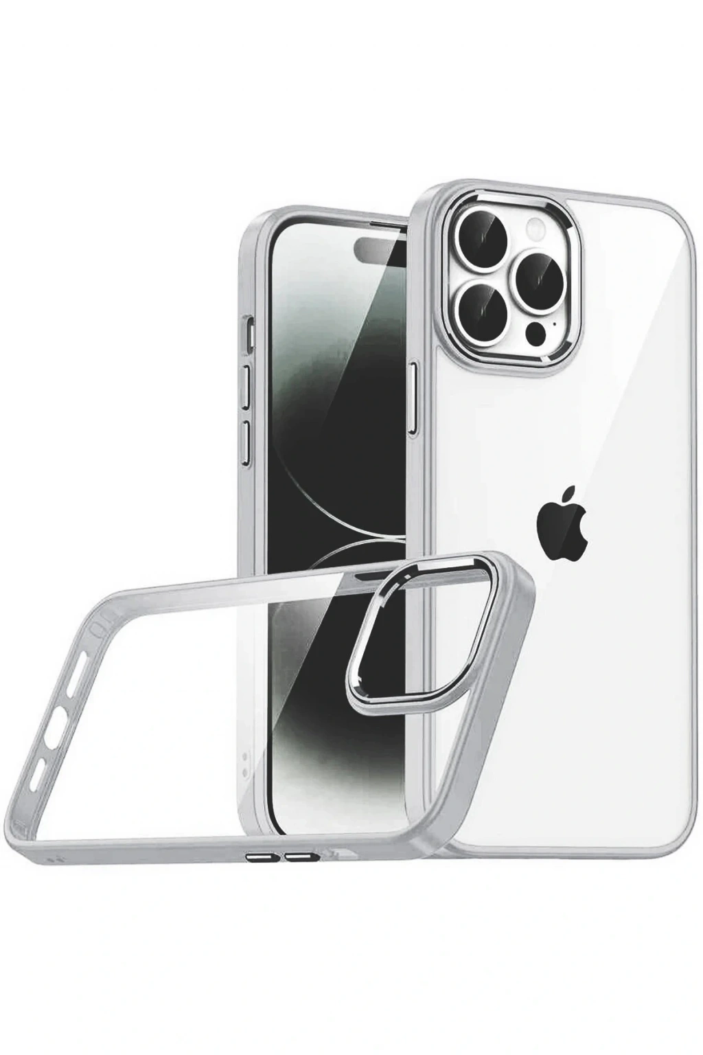 Apple iPhone 15 Pro Max Lensli Silikon - Gümüş