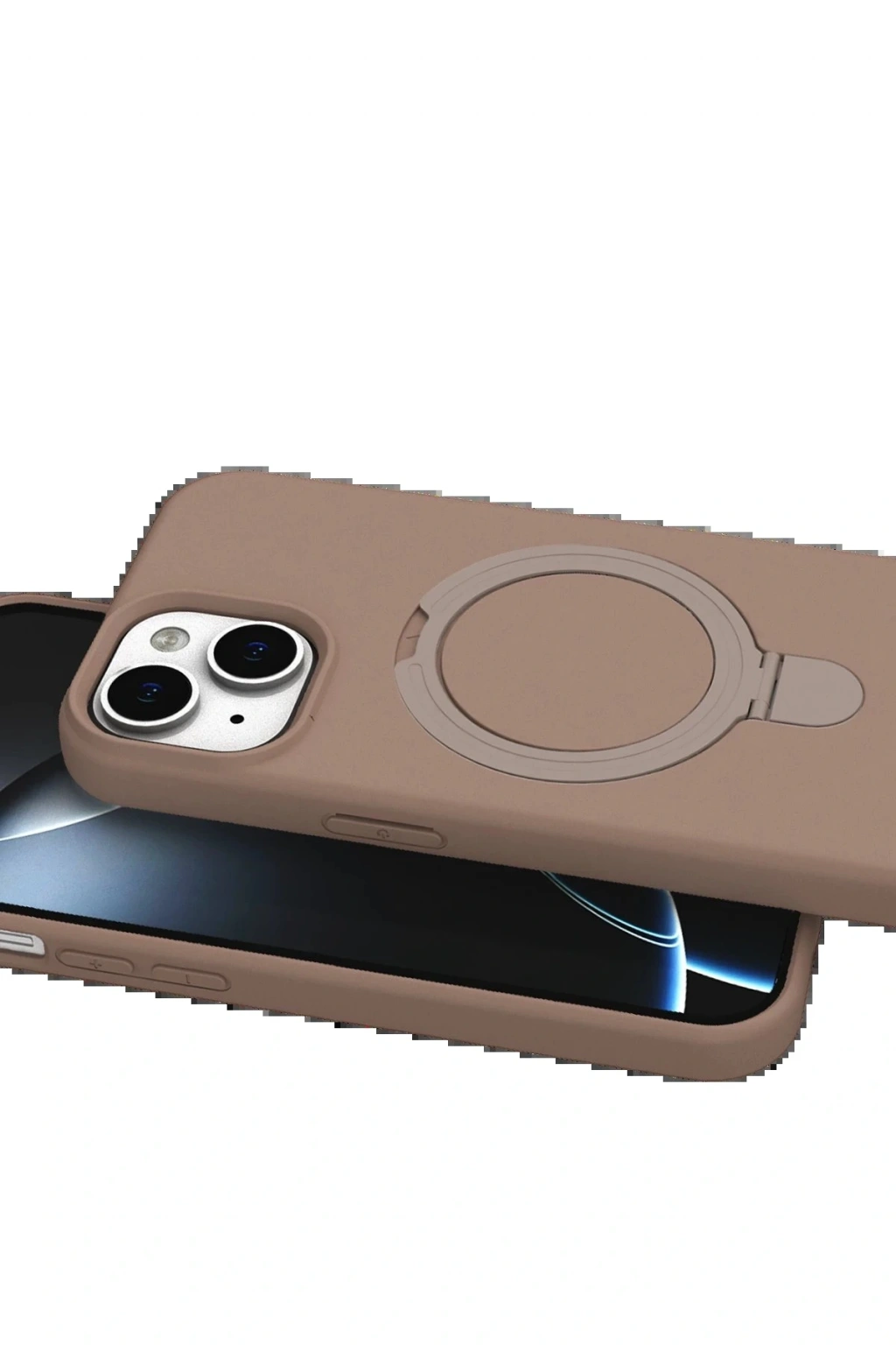 Apple iPhone 15 Regal Magsafe Standlı Kapak - Çöl Titanyum