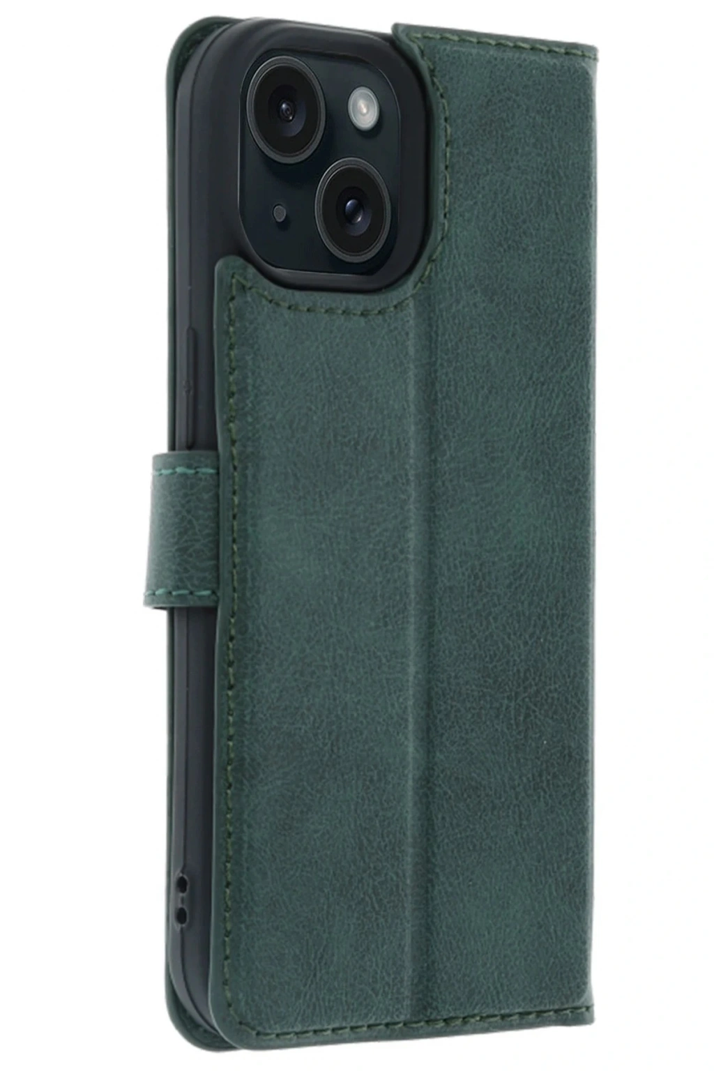 Apple iPhone 15 Trend S Plus Kapaklı Kılıf - Yeşil