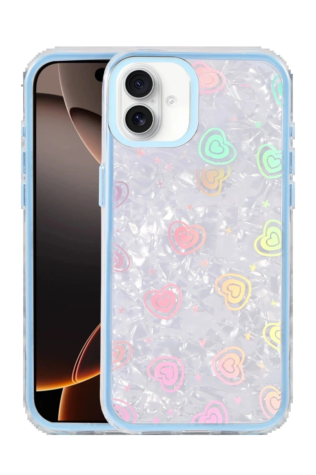✅ Kristal şeffaf tasarımı ve renkli kalp desenleriyle şık bir görünüm sunar.