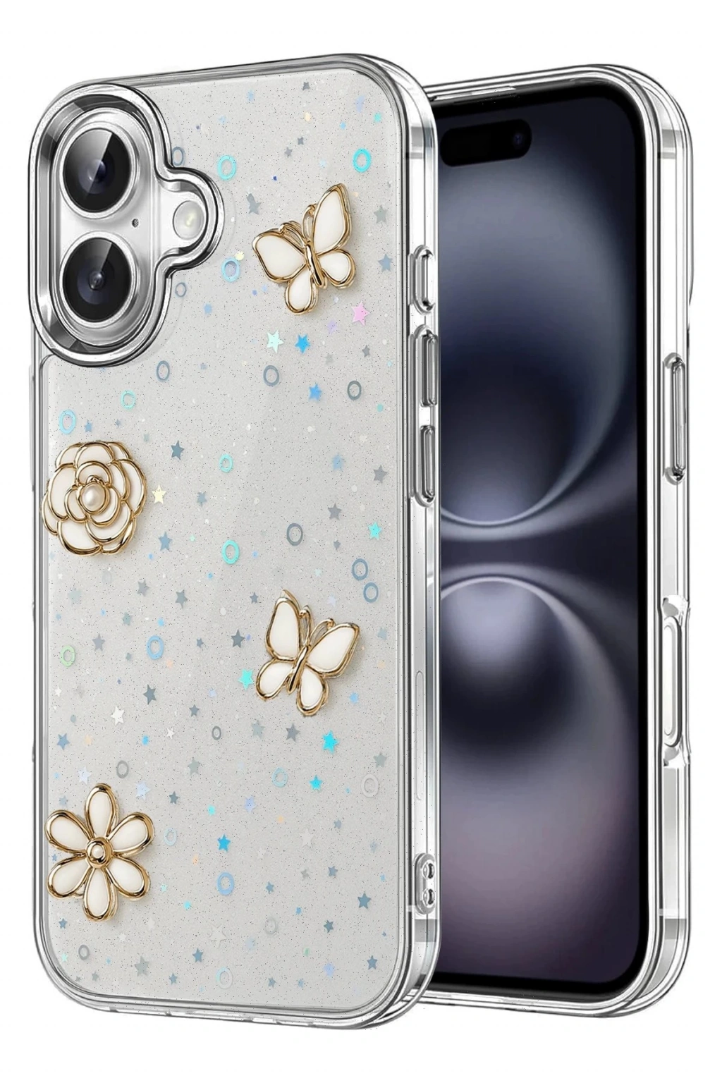 Fiyonk, yıldız, kelebek, lale, çiçek, kalp ve gül gibi zarif detaylarla süslenmiş bu kapak; simli, şeffaf tasarımıyla estetik ve korumayı bir araya getiriyor. Telefonunuzu yalnızca dış etkenlerden korumakla kalmaz, aynı zamanda ona göz alıcı bir stil kazandırır. Günlük kullanımda dikkat çeken tasarımı sayesinde cihazınızın şıklığı öne çıkar.