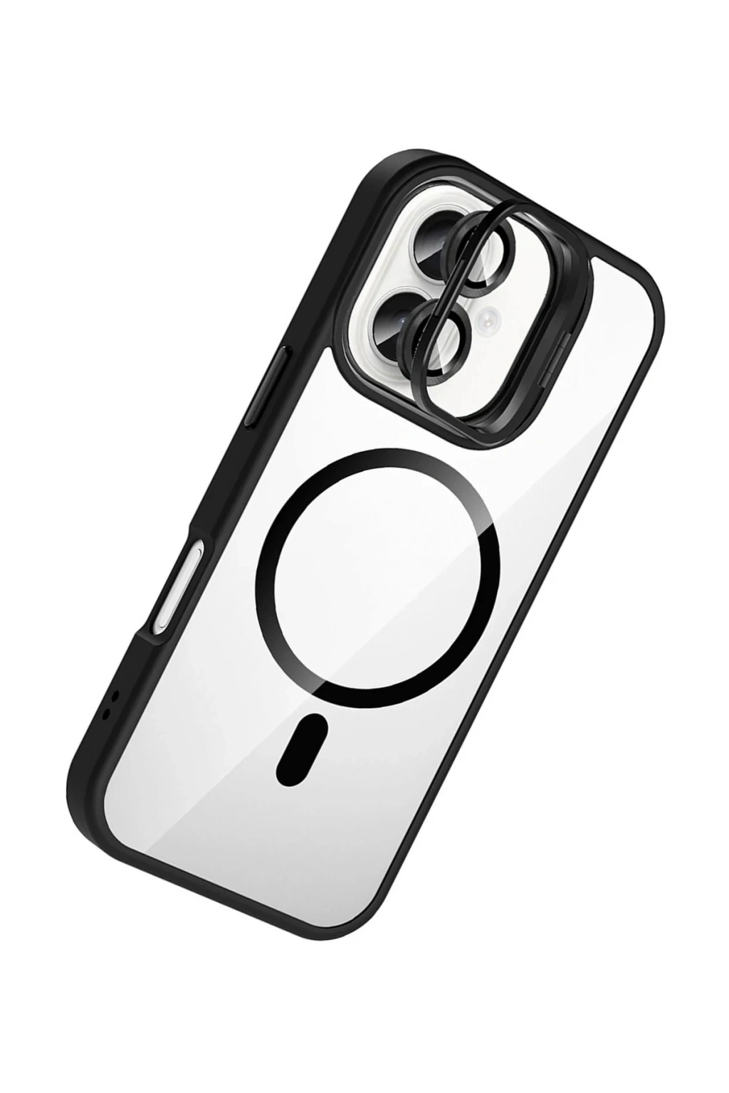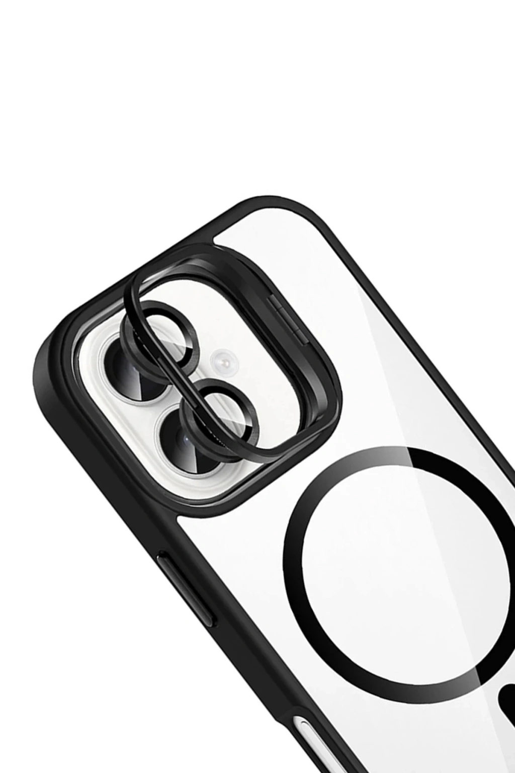 Apple iPhone 16 Plus Remim Lensli Magsafe Standlı Kapak - Siyah
