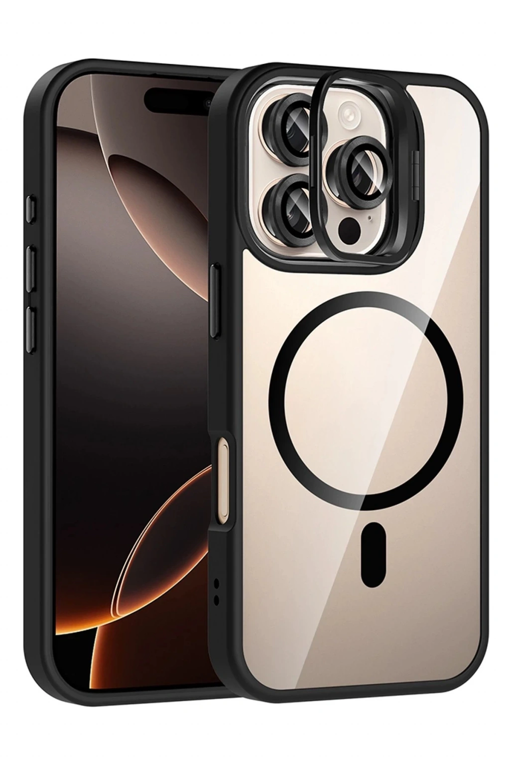 Apple iPhone 16 Pro Remim Lensli Magsafe Standlı Kapak - Siyah
