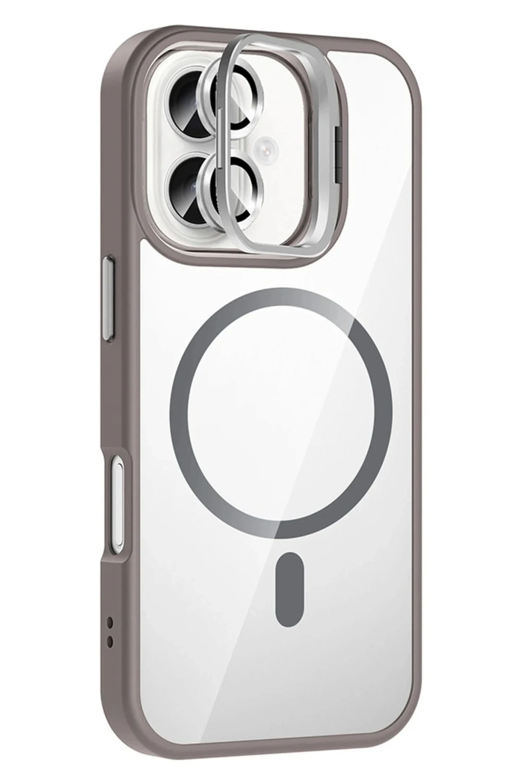 Apple iPhone 16 Remim Lensli Magsafe Standlı Kapak - Titan Gri