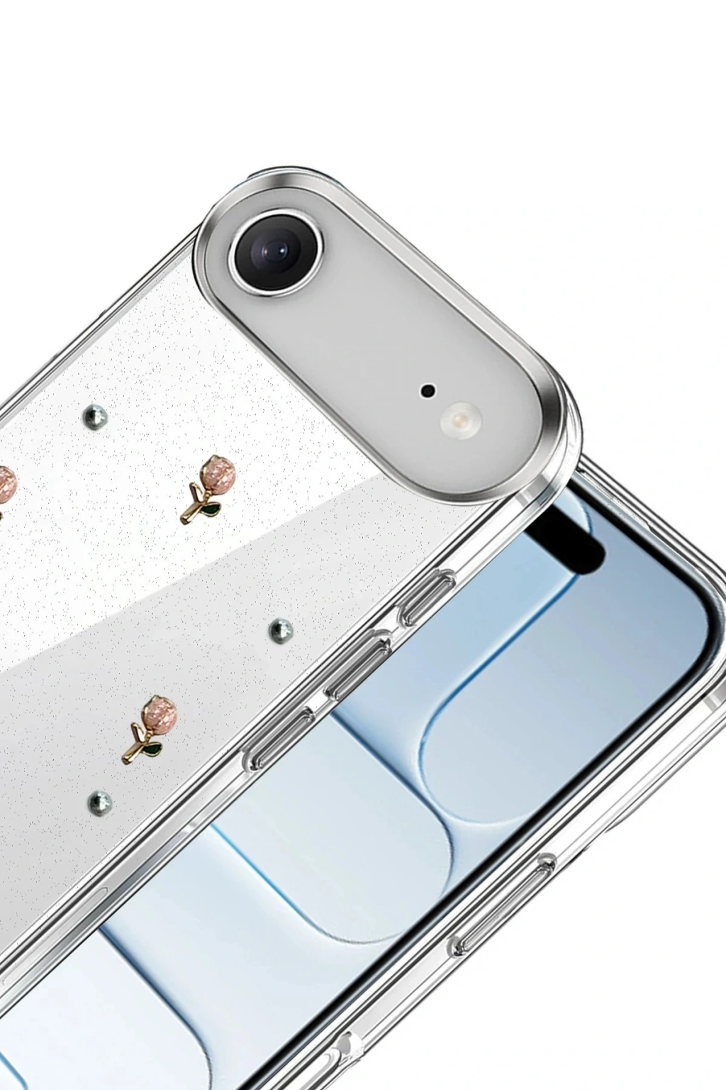 Fiyonk, yıldız, kelebek, lale, çiçek, kalp ve gül gibi zarif detaylarla süslenmiş bu kapak; simli, şeffaf tasarımıyla estetik ve korumayı bir araya getiriyor. Telefonunuzu yalnızca dış etkenlerden korumakla kalmaz, aynı zamanda ona göz alıcı bir stil kazandırır. Günlük kullanımda dikkat çeken tasarımı sayesinde cihazınızın şıklığı öne çıkar.