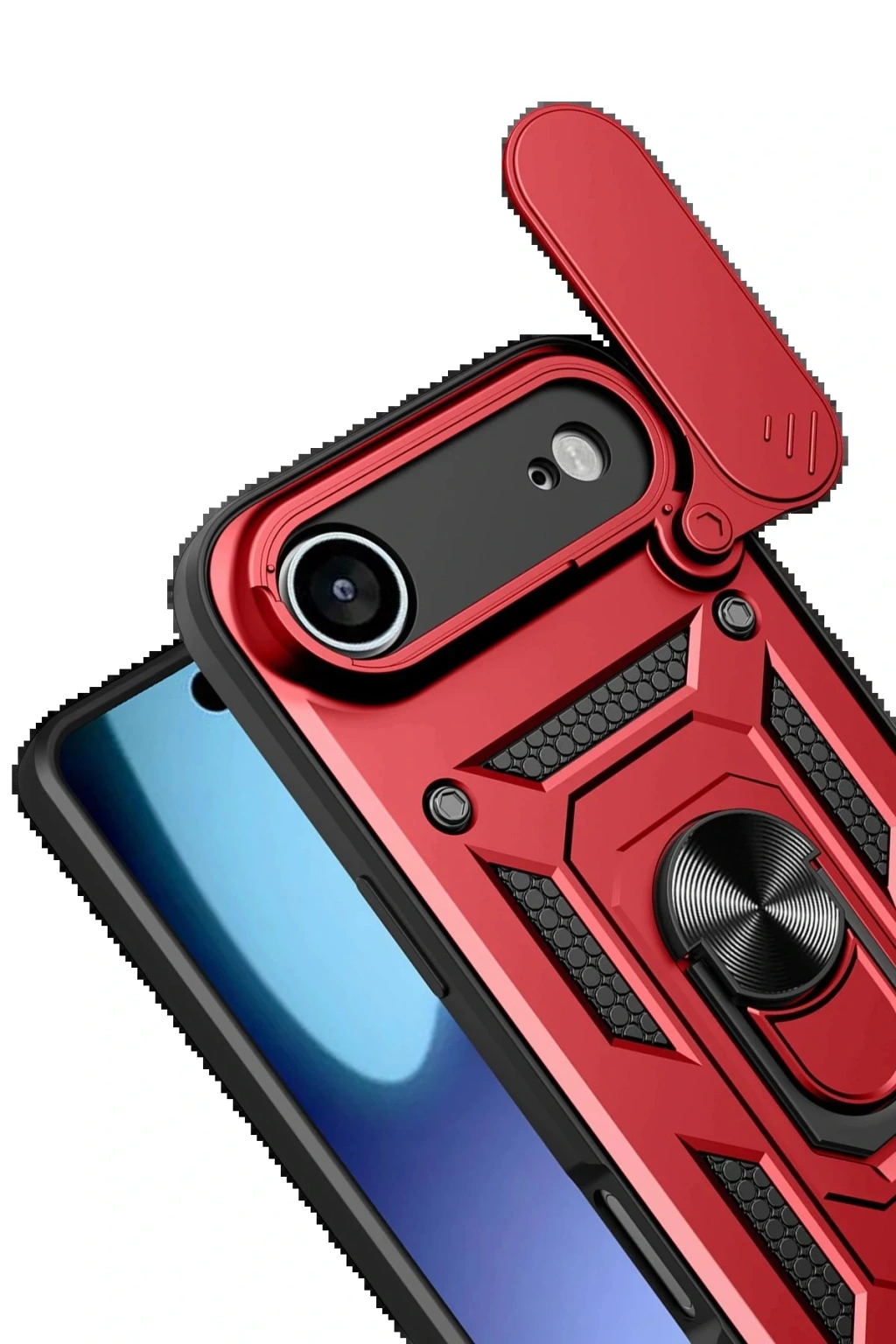 Apple iPhone 17 Air Pars Lens Yüzüklü Silikon - Kırmızı