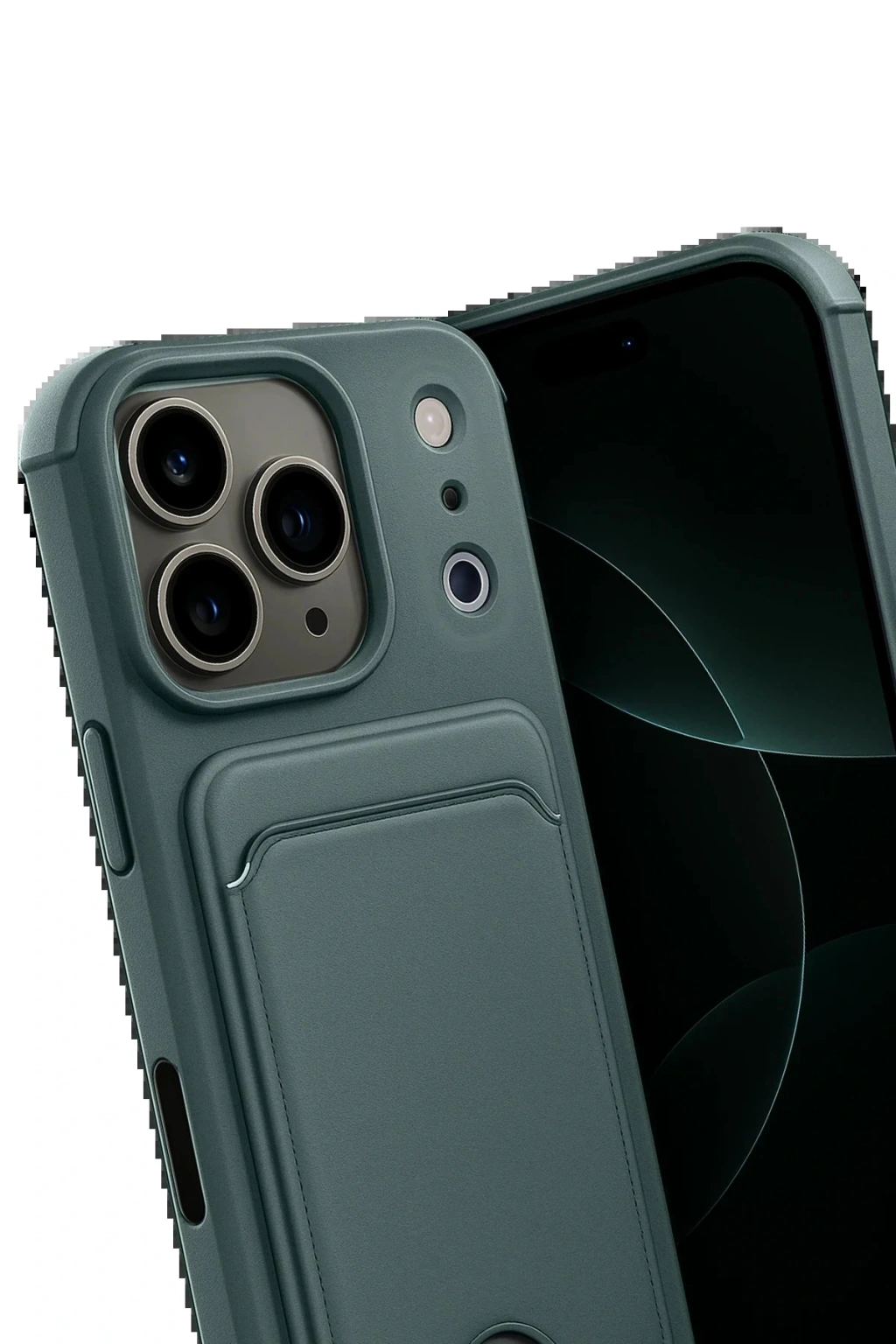 Apple iPhone 17 Pro Max Kelvin Kartvizitli Silikon - Koyu Yeşil