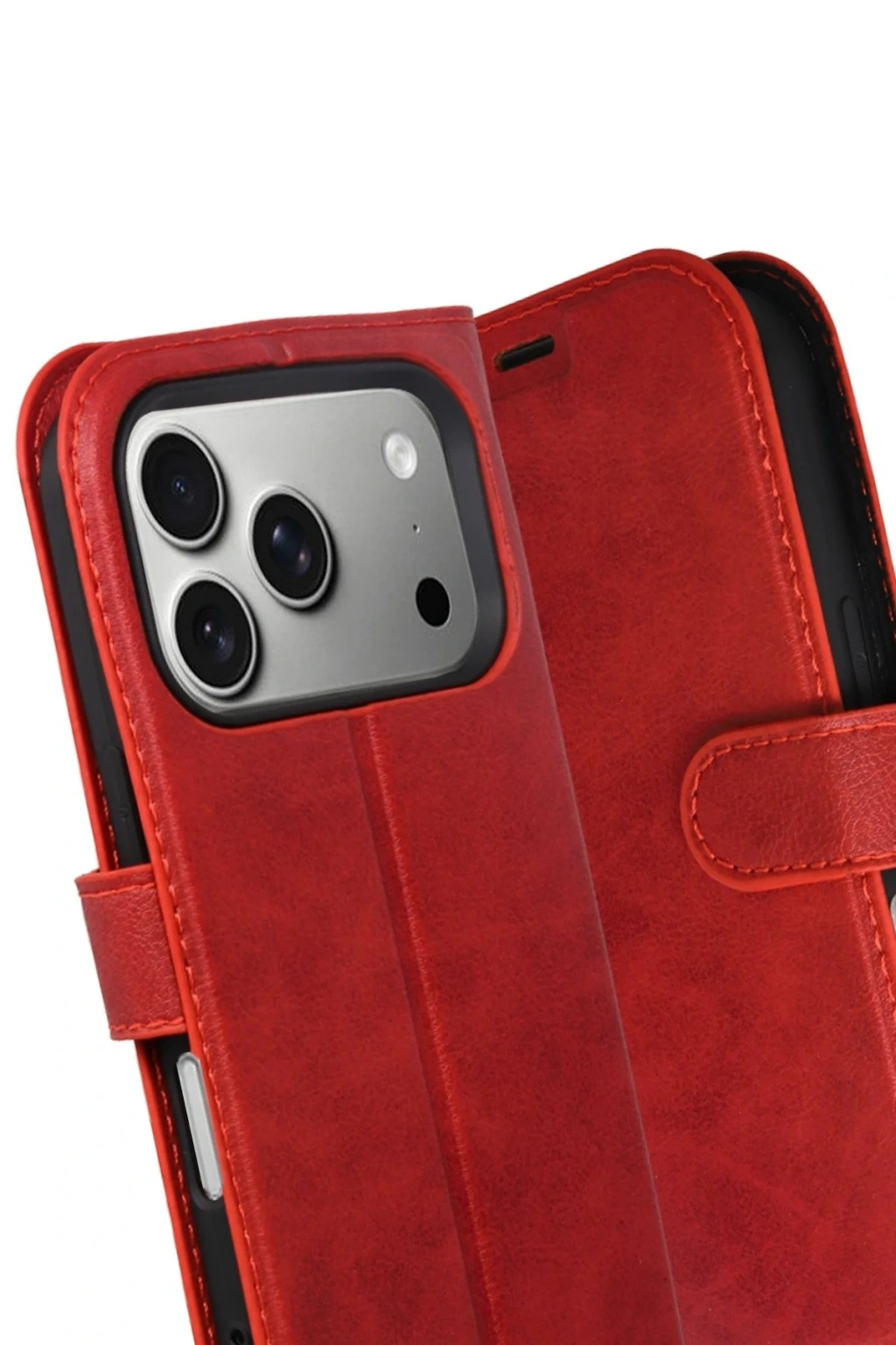 Apple iPhone 17 Pro Trend S Plus Kapaklı Kılıf - Kırmızı