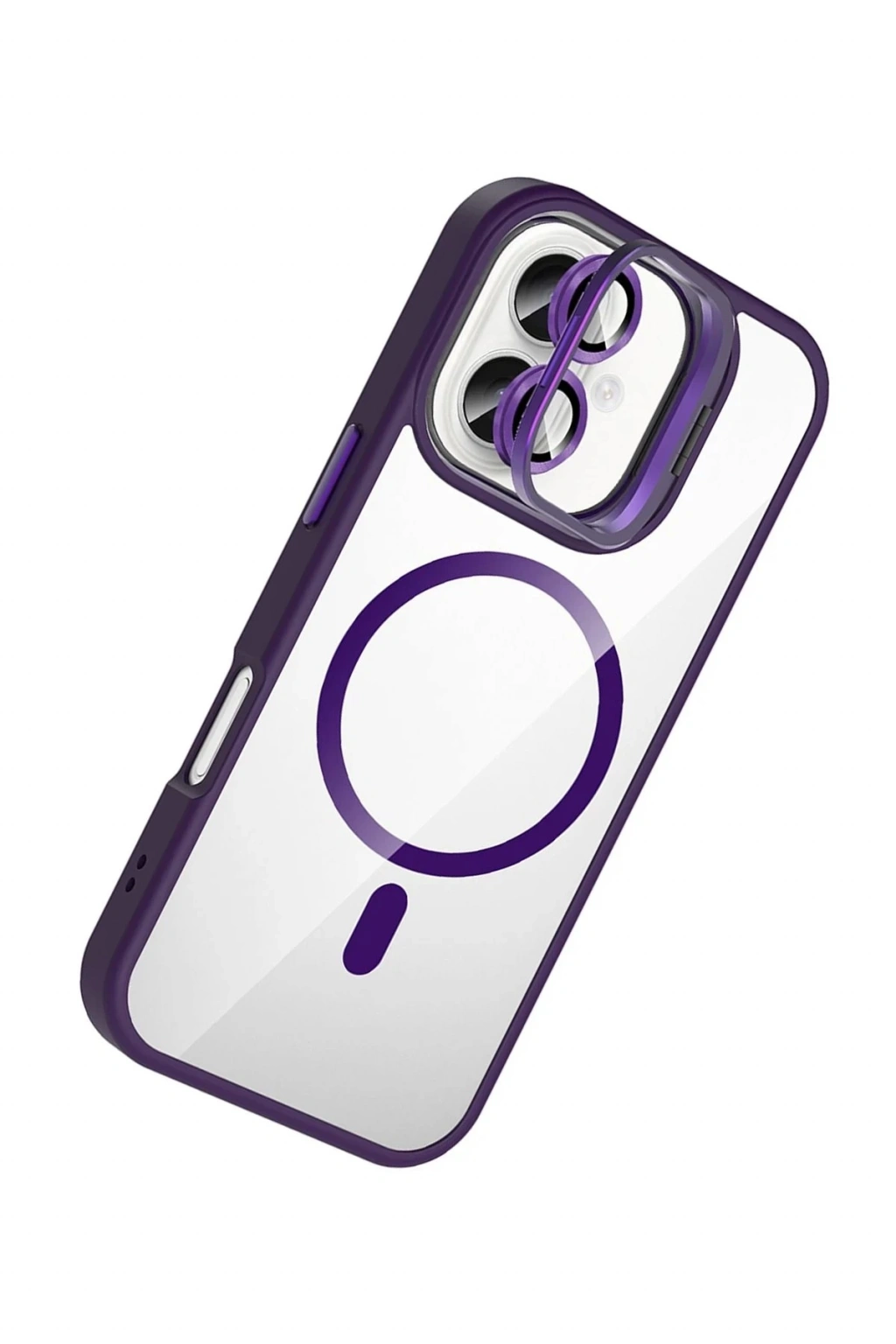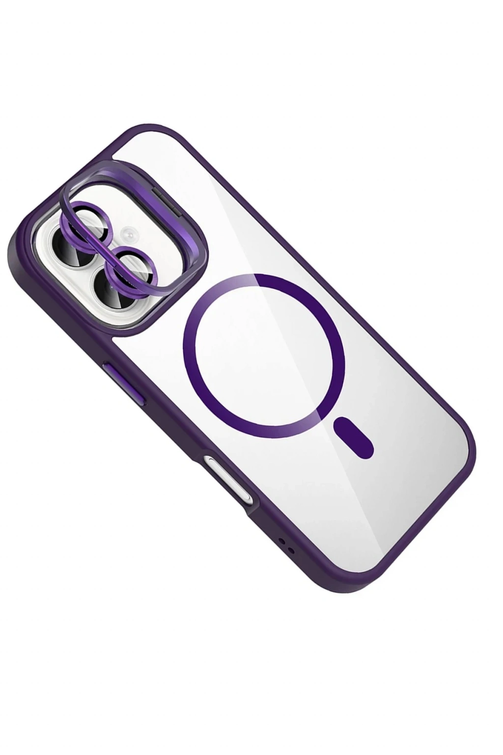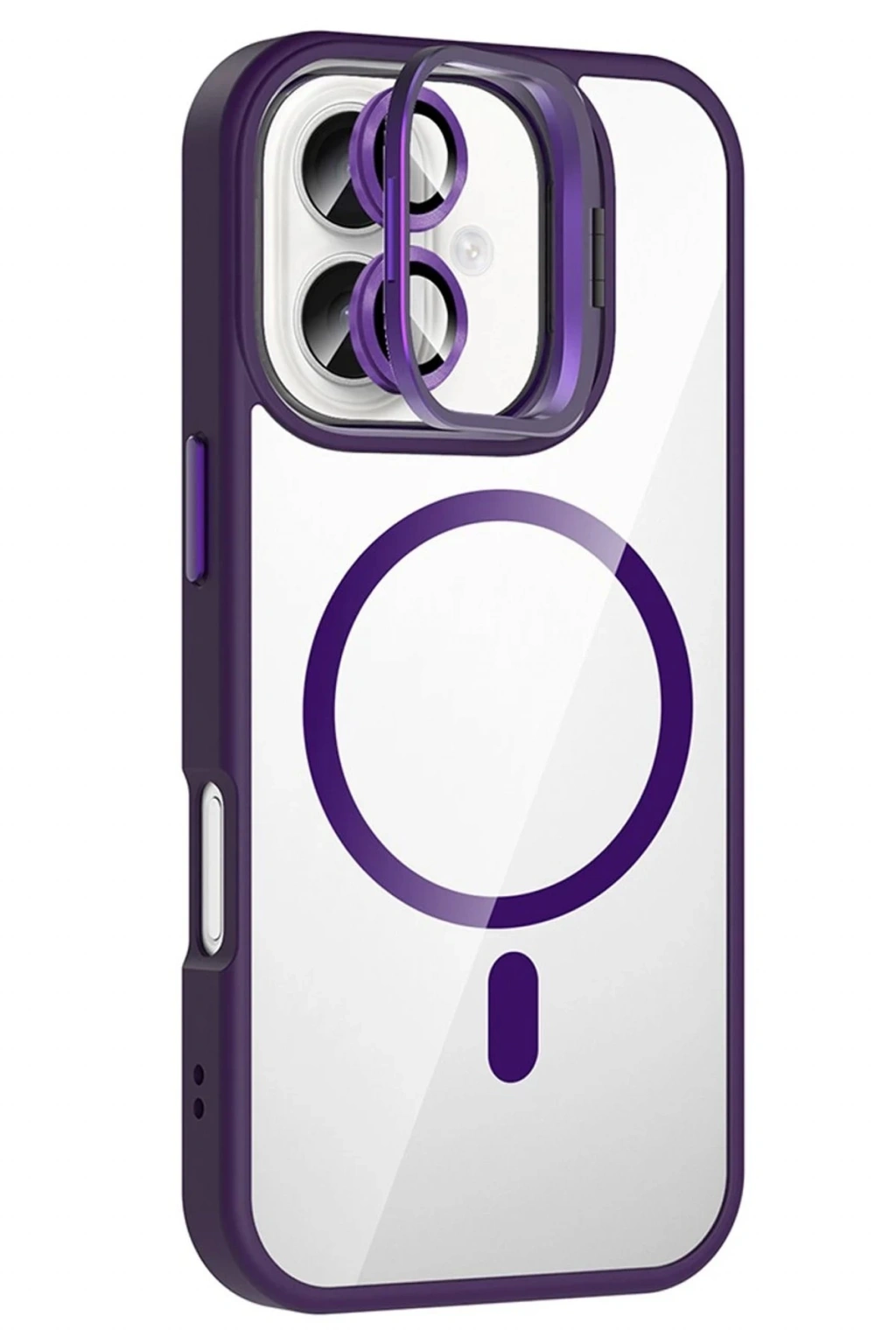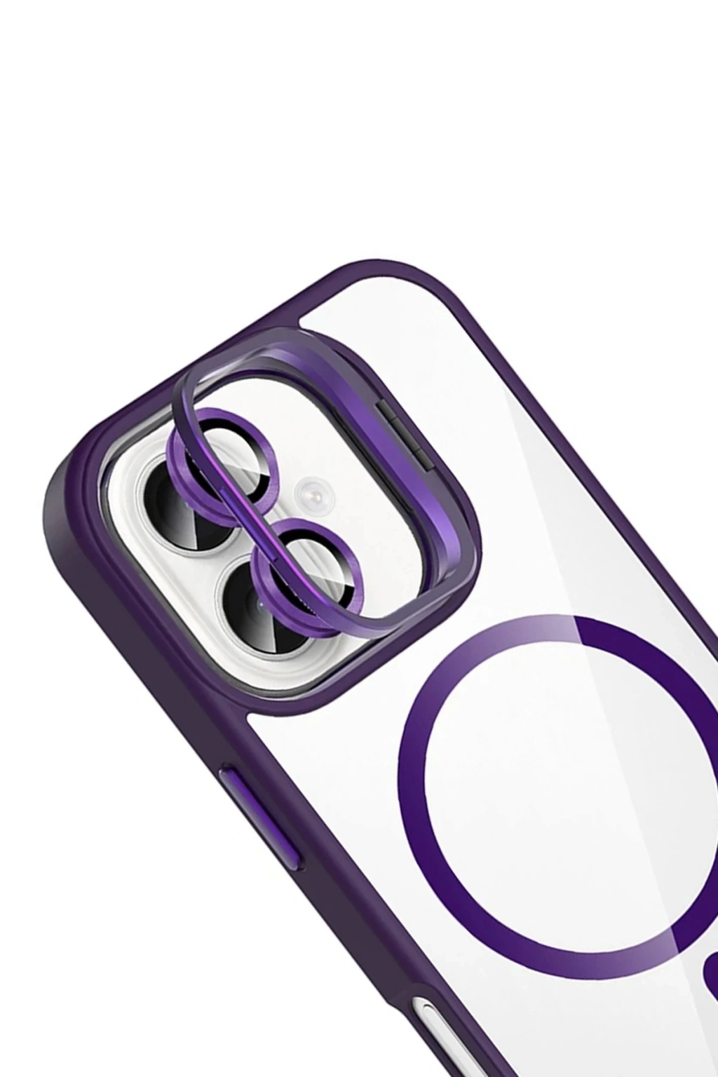 Apple iPhone 17 Remim Lensli Magsafe Standlı Kapak - Derin Mor