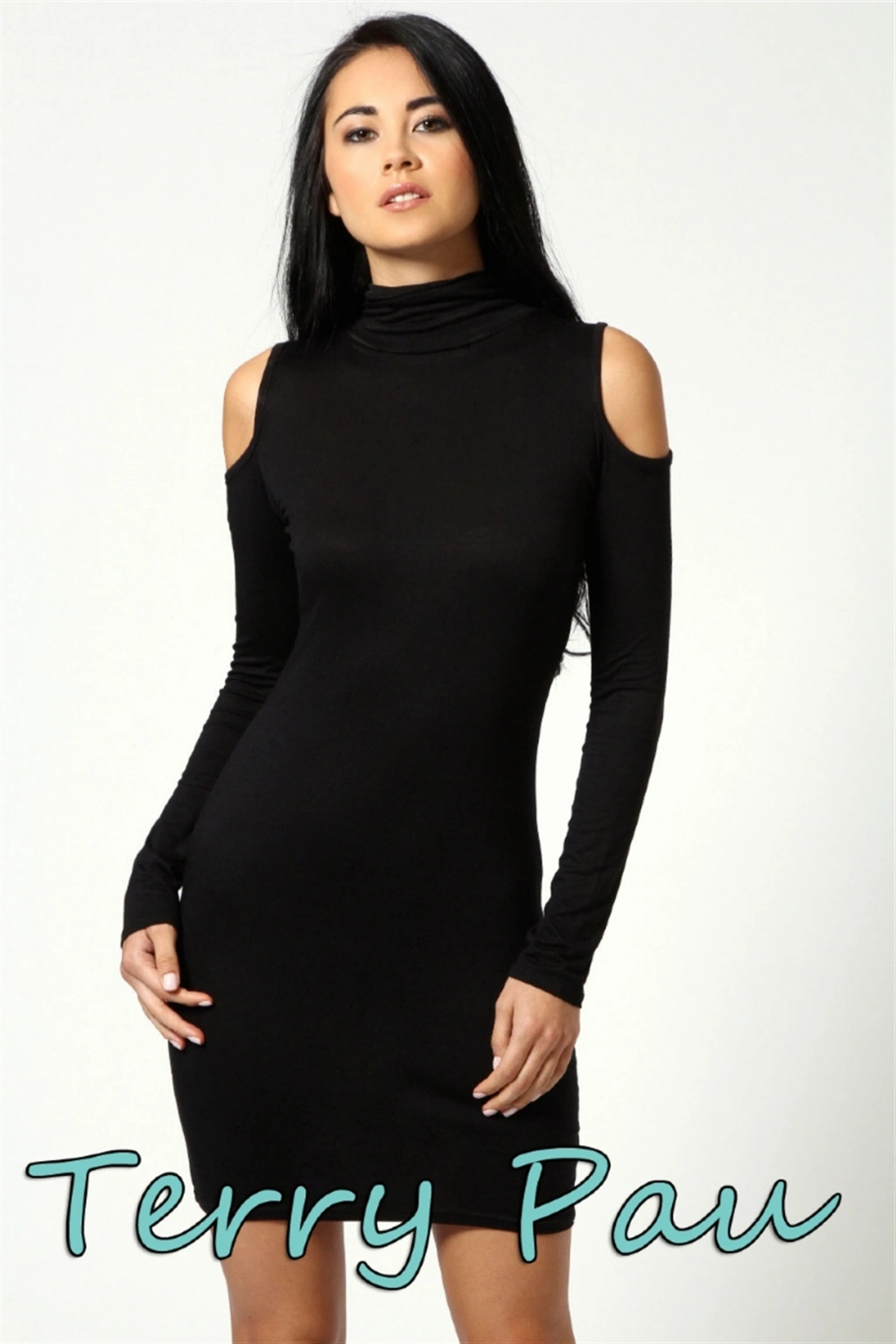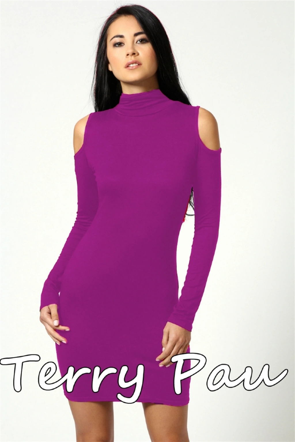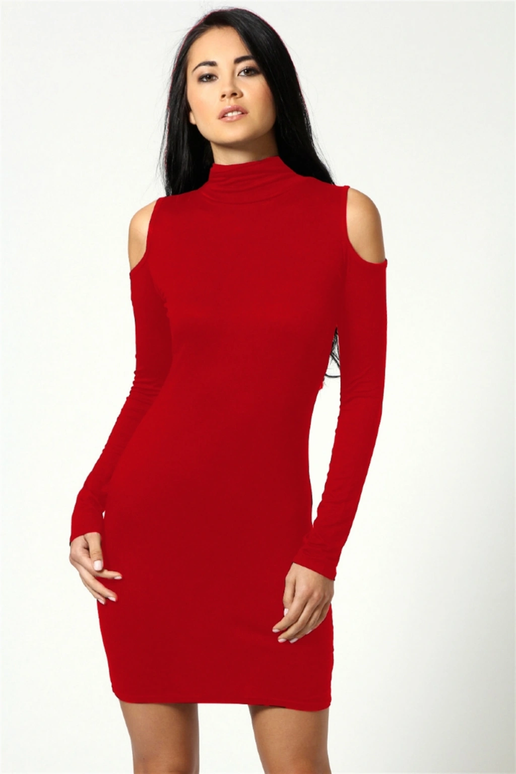 B101177 Omuzu Açık Uzun Kollu Elbise