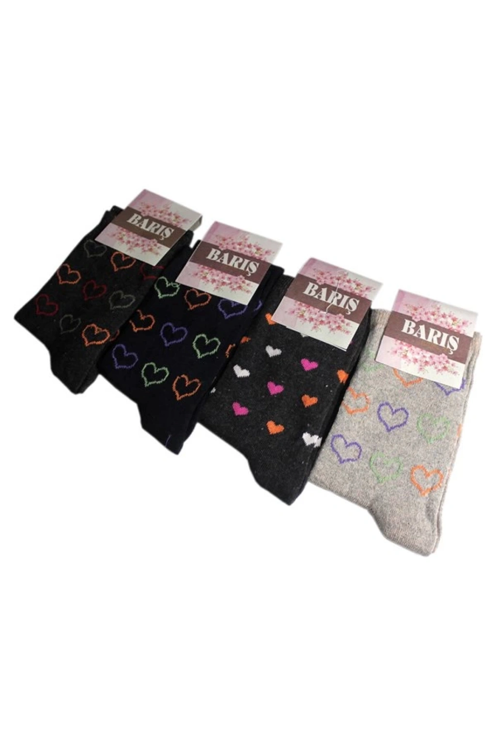 Barış Kalp Desenli Likralı Kadın Soket Çorap Adet