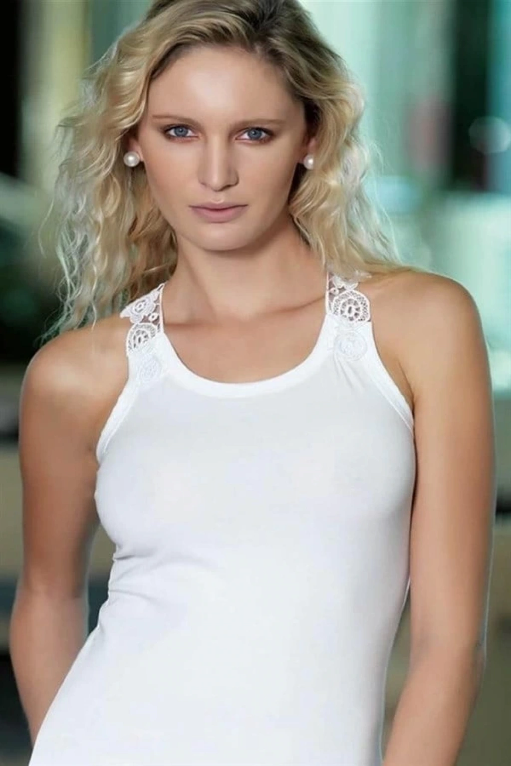Kadın Beyaz Normal Kalıp Dantel Detalı Ince Askılı Oyuk Yaka Atlet