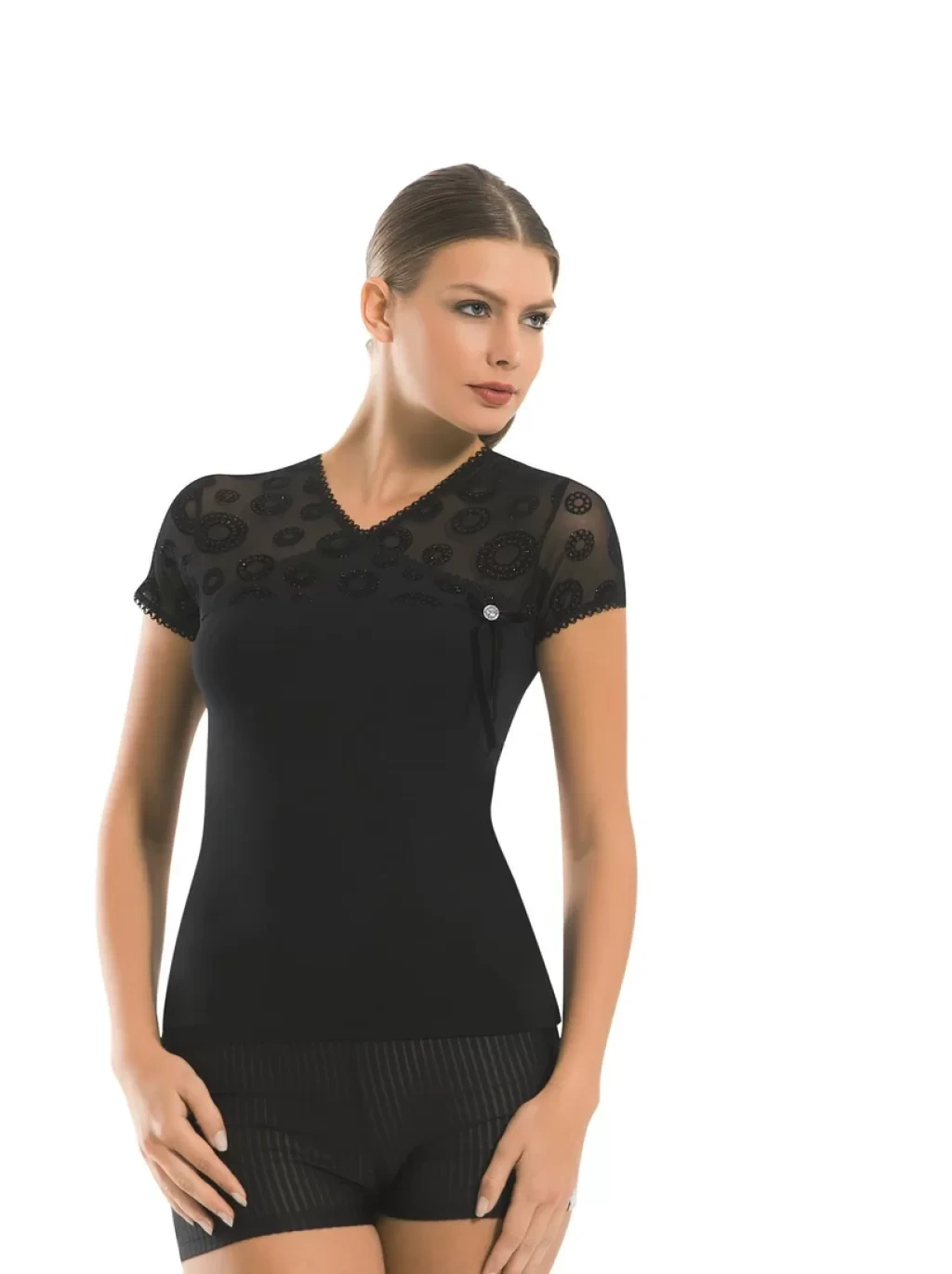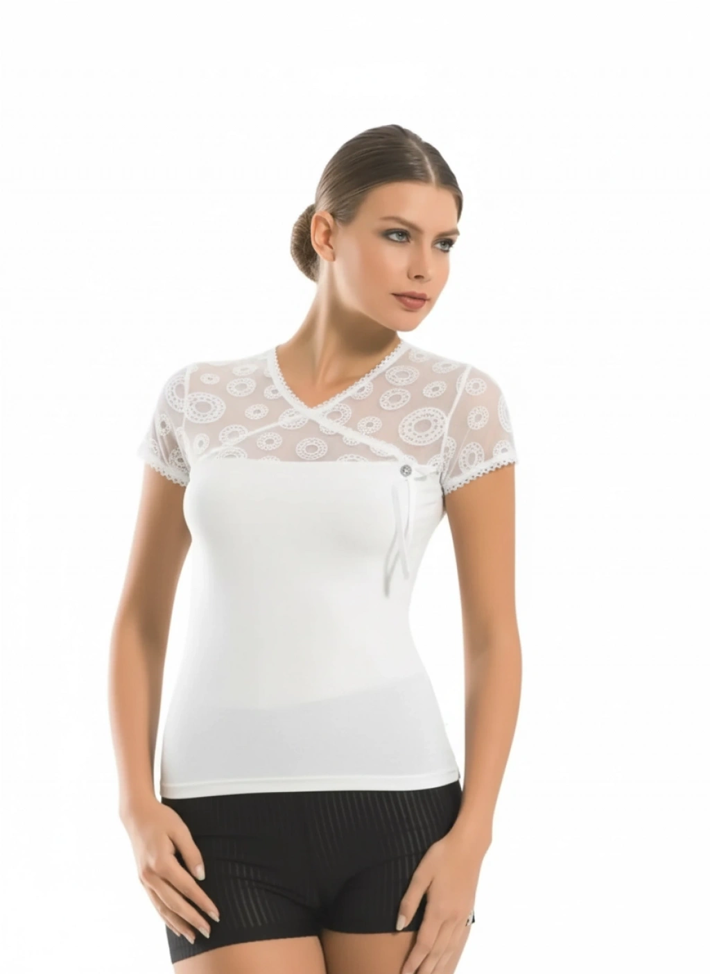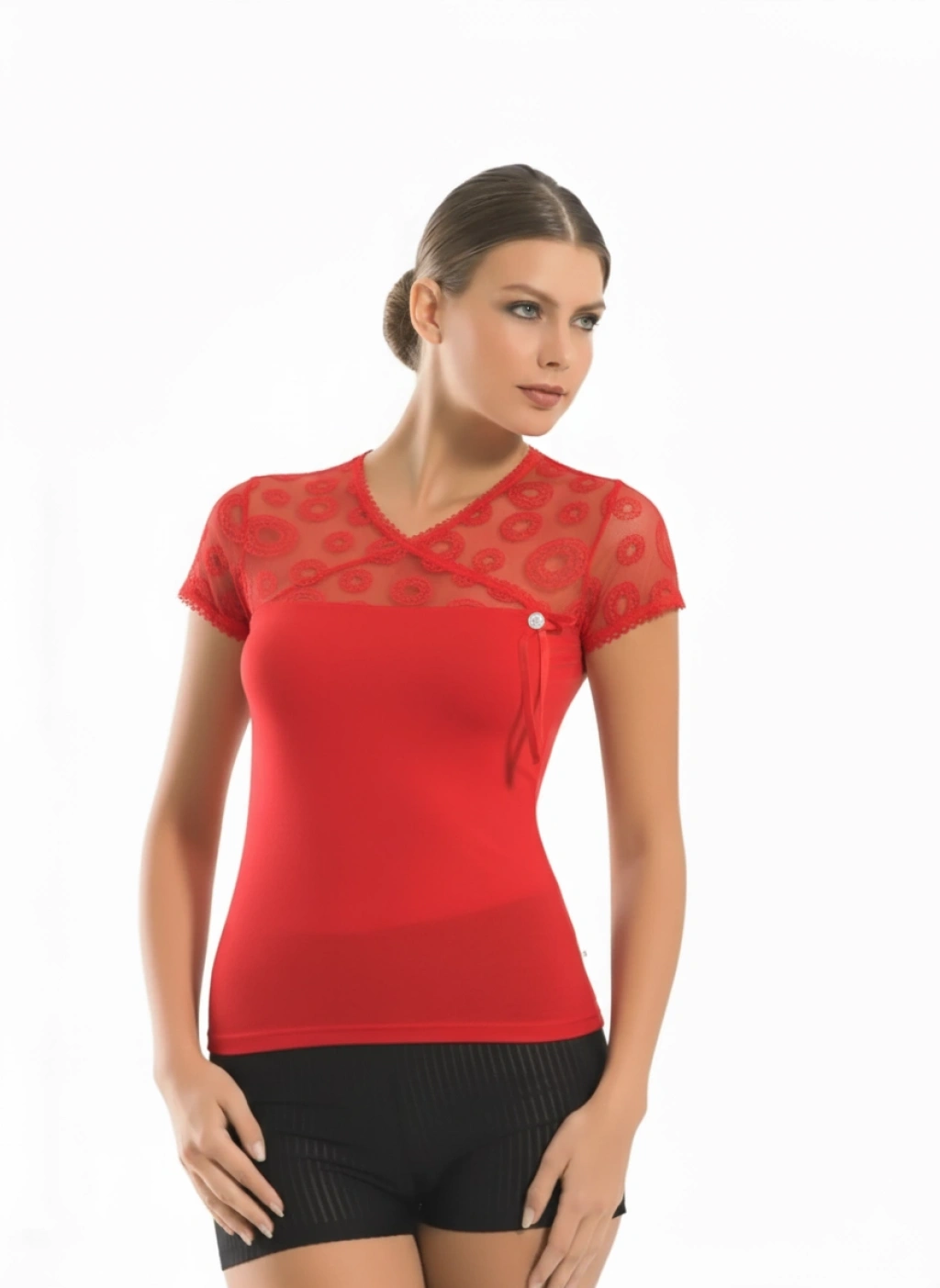 Bayan Kısa Kol Dantelli Elastane 8015