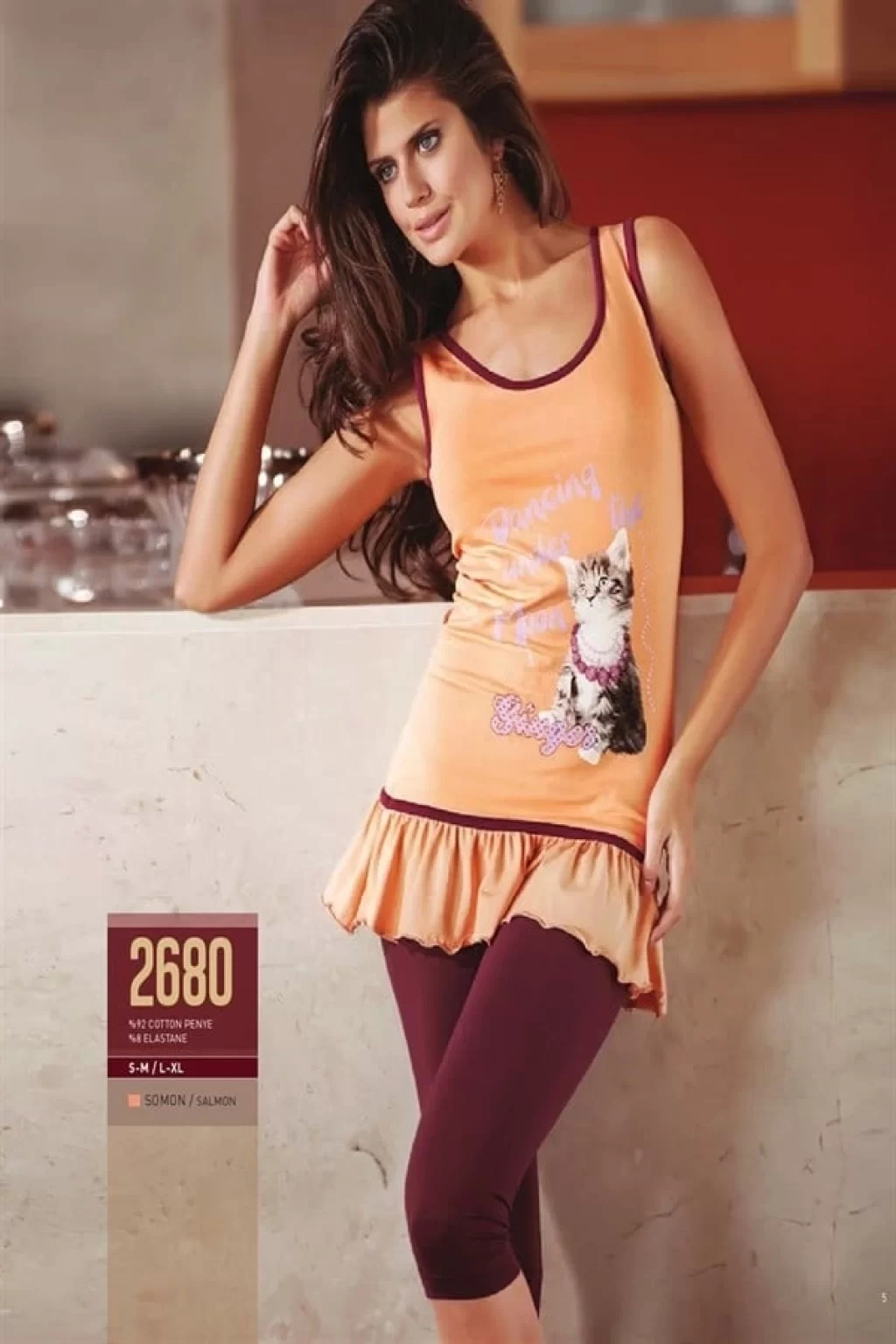 Kadın Beyaz Çiçekli Desenli Askılı Gecelik 5109