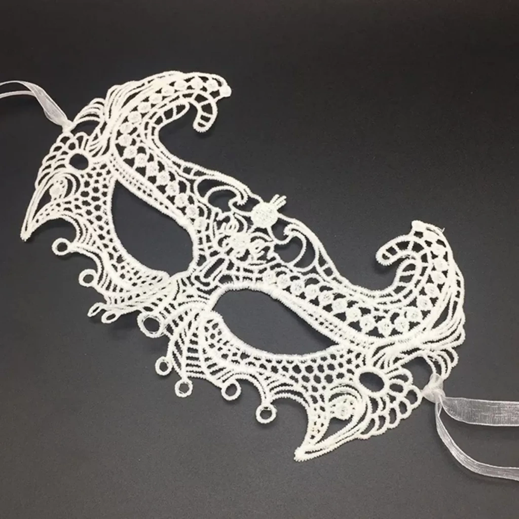 Maskenin üzerinde bulunan dantel işlemeler, ürüne zarif ve romantik bir hava katar. Bu işlemeler, maskenin şıklığını ve göz alıcılığını bir üst seviyeye taşır.