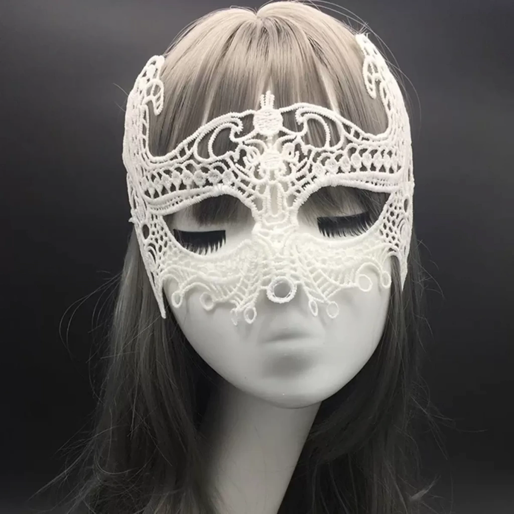 Beyaz Renk Dantel Kesim Dantel İşlemeli Balo Parti Maskesi