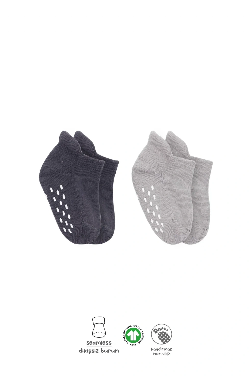 Bistyle 2'li Altı Havlu Sneakers Kaymaz Çorap 20501 Gri-antrasit