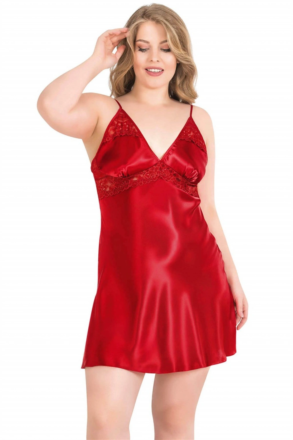Büyük Beden Kırmızı Kısa İkili Saten Sabahlık Gecelik Takımı 6160