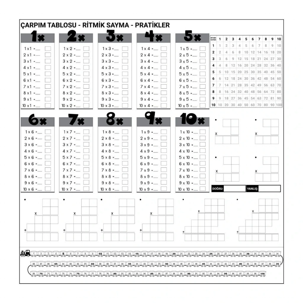 Okula yeni başlayan çocuklarınız için çarpım tablosu alıştırmaları yapabileceğiniz duvara yapıştırılabilir sticker pano.