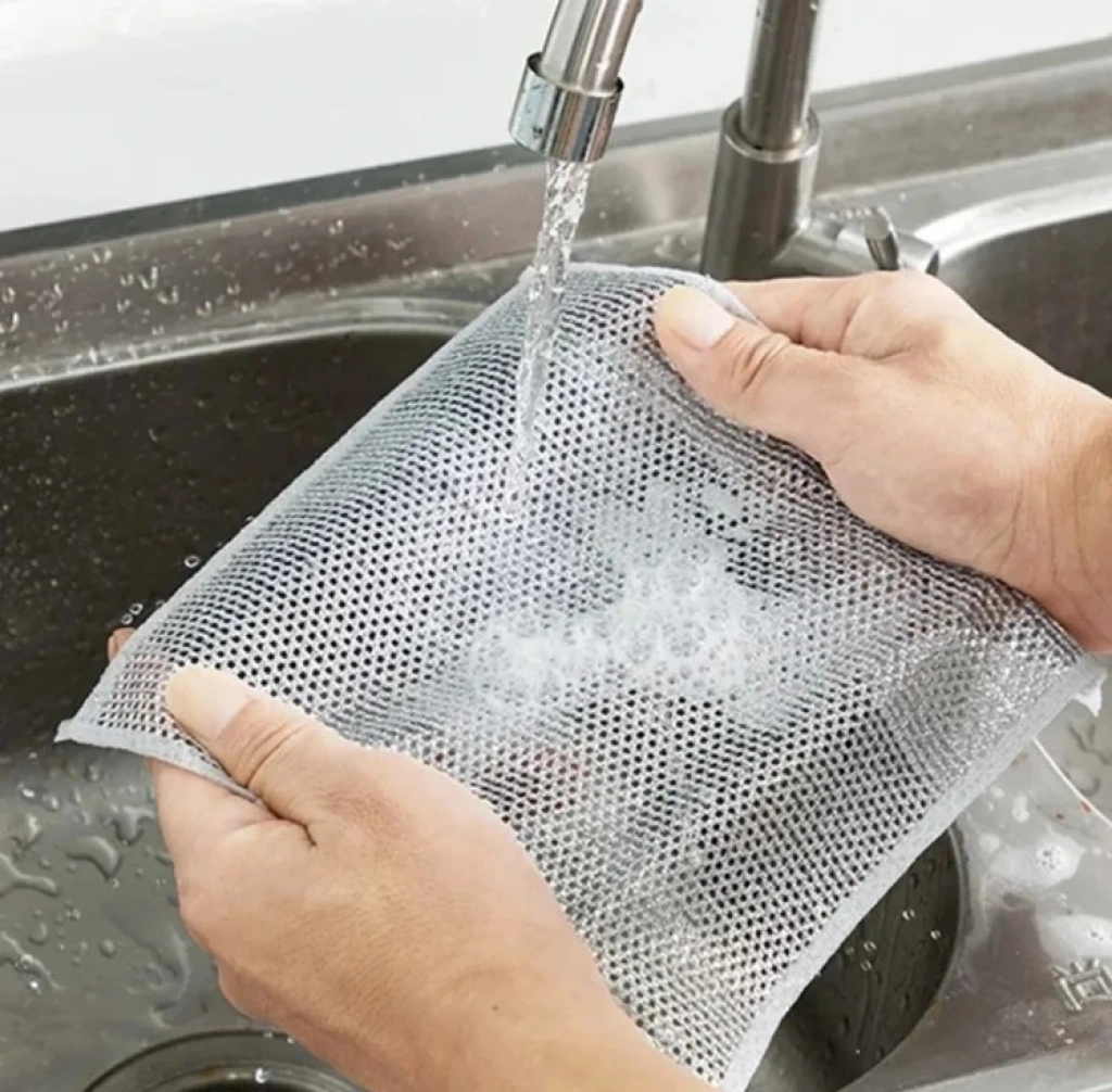 Çok amaçlı tel bulaşık bezi, bulaşıkları, lavaboları ve daha fazlasını ovalayan ve temizleyen birinci sınıf bir metal tel bulaşık yıkama bezdir.