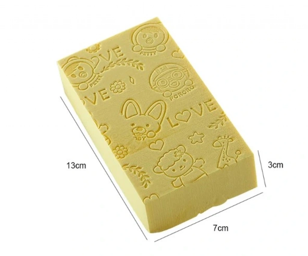 Bu banyo süngeri, süngerler ve cilt arasındaki sürtünmeyi artıran ve çamur sürtünmesini daha iyi hale getiren hassas taneciklere sahiptir.