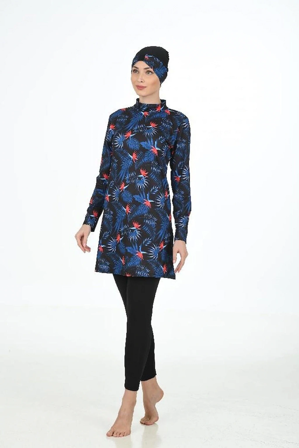 Fantasy 3315 Bayan Yaprak Desenli Tesettür Mayo