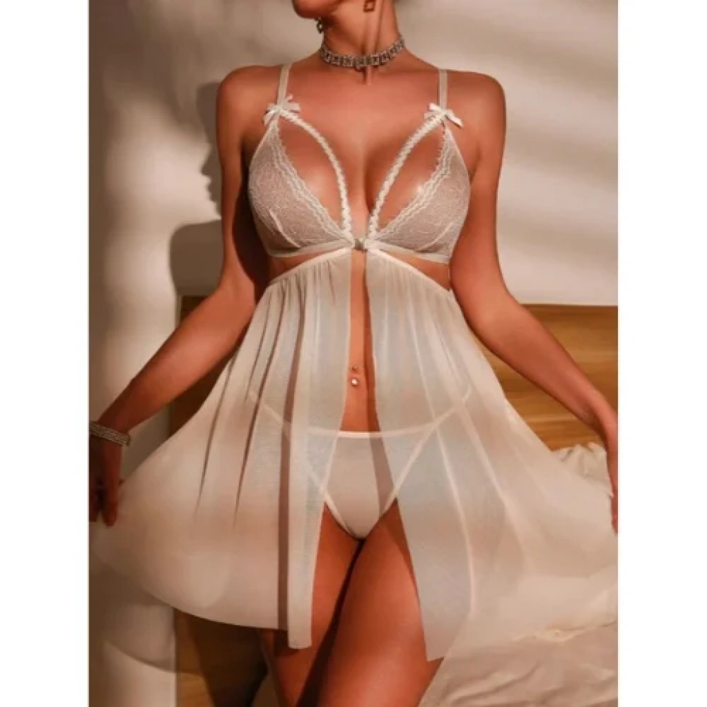 Ürün 2 parçadan oluşmaktadır. 1 adet Gecelik ve 1 adet String. Ürünün Üst Kısmı Dantelden Alt Kısmı Transparan Tül den Üretilmiştir.Sütyen Önden Kopçalıdır. Zarif ve çekici bir görünüm arayanlar için Fantezi Dantel Sütyenli Transparan Gecelik , şıklığı ve seksiliği bir arada sunuyor. İnce işçilikle hazırlanmış dantel detayları, geceliği zarif biçimde uygulanırken, şeffaf kumaşı dökülen zarif hatlarını ortaya çıkarır. Sütyen tasarımı , göğüslerinizi toparlayarak güzel bir şekil vererek, rahatlıkla giyilebilir bu gecelik, aynı zamanda etkileyici bir görünüm sunuyor. Dantel Detaylar : Göğüs kısmındaki dantel sütyen, zarif bir dokunuş ekler ve şıklığınızı vurgular. Transparan Kumaş : Cildinizin zarif şapkalarını ortaya çıkarabilen transparan kumaş, seksi bir hava katarı. Sütyen Özelliği : Göğüsleri destekleyen sütyen tasarımı, gövdesi kusursuz, sarılmış ve mükemmel bir görünüm sağlar. Konfor ve Şıklık : Hem rahat hem de seksi bir tasarım, özel gecelerin vazgeçilmezi olacak. Kullanım Önerisi : Romantik bir akşam veya özel bir gece için mükemmel bir tercih olan bu gecelik, hem kendinizi hem de partnerinizi büyütecek. Şıklığınızı ve masraflarınızı artırırken, ona bedeninize uyum sağlayacak esnek yapı ile rahatlık sunar.
