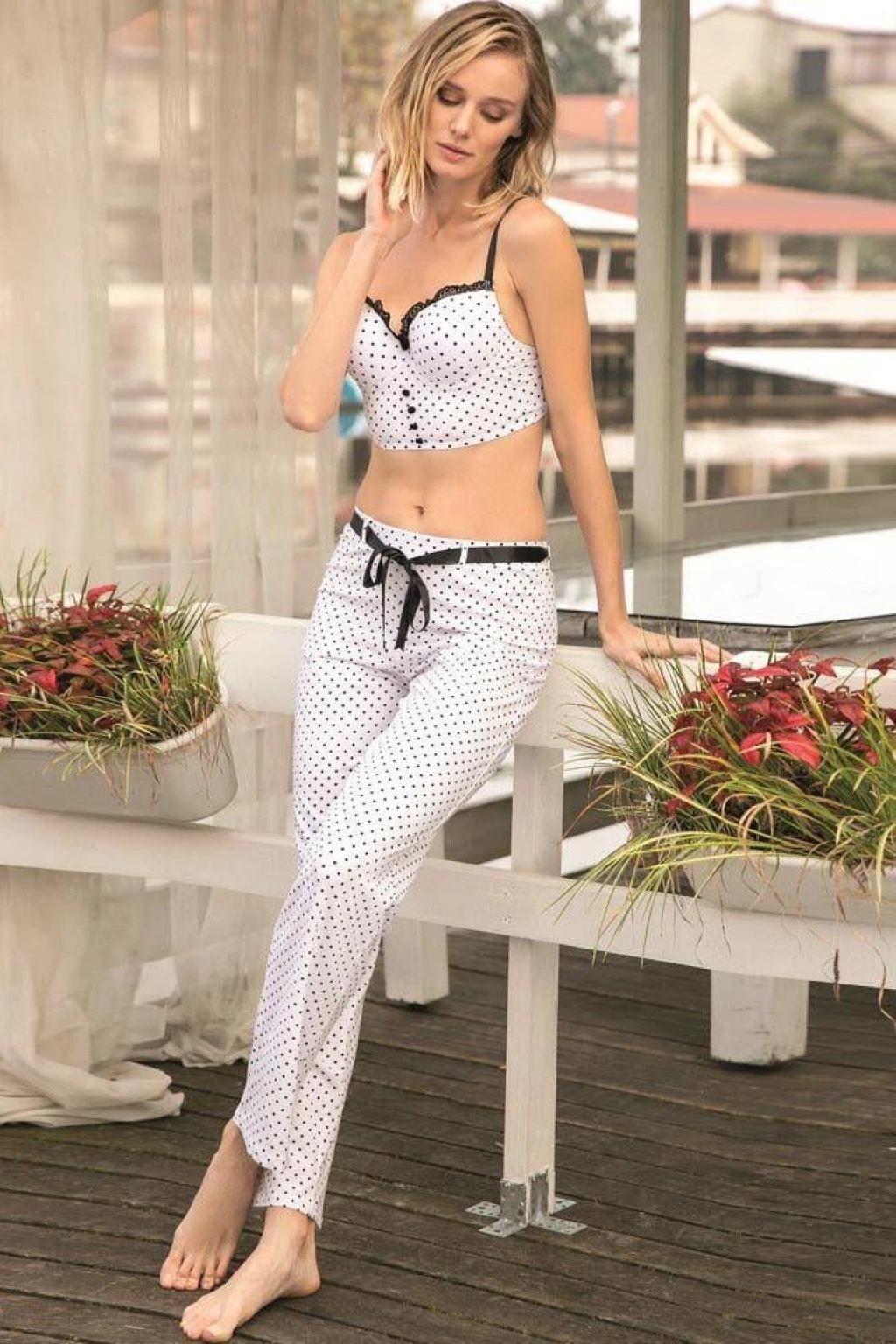 Fantezi Bralet Sütyen Bustiyer Kadın Pamuklu Puantiye Desenli Desteksiz Dolgusuz Balenli Telli Kaplı Süngerli Örme Uzun Paçalı Dantel Detaylı Tüm Sütyen / Büstiyer Takımlar modelimizPamuklu puantiyeli takım, iki parçadan oluşmaktadır. Büstiyer kısmı Push Up özelliğine sahiptir. Ürün beyaz olup siyah puantiyelere sahiptir.Pijama ve ev giyim olarak kullanıma uygundur.Yaz günleri için serinletici bir tercihtir.Puantiye deseni ürüne oldukça hoş bir görüntü kazandırmaktadır.