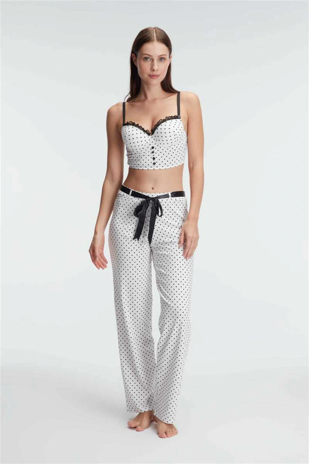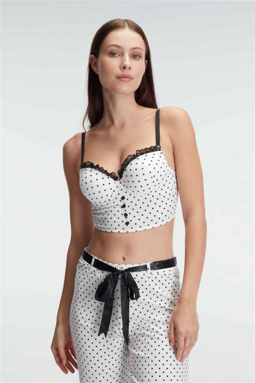 Kısa Ad:Fantezi Bralet Sütyen Pamuklu Puantiye Desenli Desteksiz Dantel Detaylı Pijama Takımı 4125