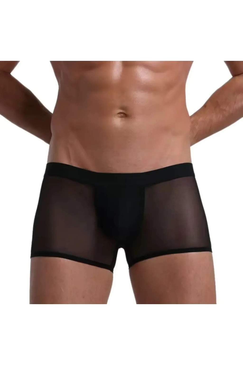Fantezi Transparan Seksi Tül Erkek Boxer 1 PARÇADIR GÖRSELDE UYGUNSUZ YERİ KAPATILMASI ADINA PED KULLANILMIŞTIR PED ÜRÜNE DAHİL DEĞİLDİR.Fantezi transparan tül erkek boxer, fantezi iç çamaşırı dünyasında öne çıkan bir üründür. Bu çamaşırlar, ince tül yapısı sayesinde transparan ve çekici bir görünüm sunar. Özel anlar için mükemmel bir tercih olan fantezi transparan tül erkek boxer modelleri, vücut hatlarını ön plana çıkaran tasarımları ve esnek dokusuyla fark yaratır. Nefes alabilir ve hafif malzemelerden üretilen bu fantezi iç çamaşırı, hem konforu hem de estetiği bir arada sunar. Fantezi iç çamaşırı alışverişinde kaliteli ve dayanıklı ürünler tercih etmek önemlidir. Fantezi transparan tül erkek boxer ile hem kendinizi özel hissedebilir hem de partnerinize unutulmaz anlar yaşatabilirsiniz. Malzeme: Transparan Tül: Şeffaf tül kumaştan üretilmiştir. Tül, hafif ve nefes alabilen bir yapıya sahip olup vücut hatlarını belirginleştirir. Yumuşak ve Esnek: Tül kumaşın yumuşak dokusu ciltte rahatsızlık yaratmaz, esnek yapısı ise hareket özgürlüğü sağlar. Tasarım: Şeffaf Yapı: Tamamen transparan olan bu boxer, vücudun hatlarını açıkça gösterir ve seksi bir görünüm sunar. Minimalist Tasarım: Dikiş detayları minimum düzeyde tutulmuştur, bu da ürünün sade ve zarif bir görünümde olmasını sağlar. Düşük Bel: Çoğunlukla düşük bel olarak tasarlanır, bu da seksi ve çekici bir görünüm sunar. Kullanım Alanları Özel Geceler: Romantik ve özel anlar için mükemmel bir tercihtir. Fetiş Giyim: Bu tür ürünler, fetiş modasına uygun olarak da kullanılabilir. Fantezi Erkek İç Çamaşırları