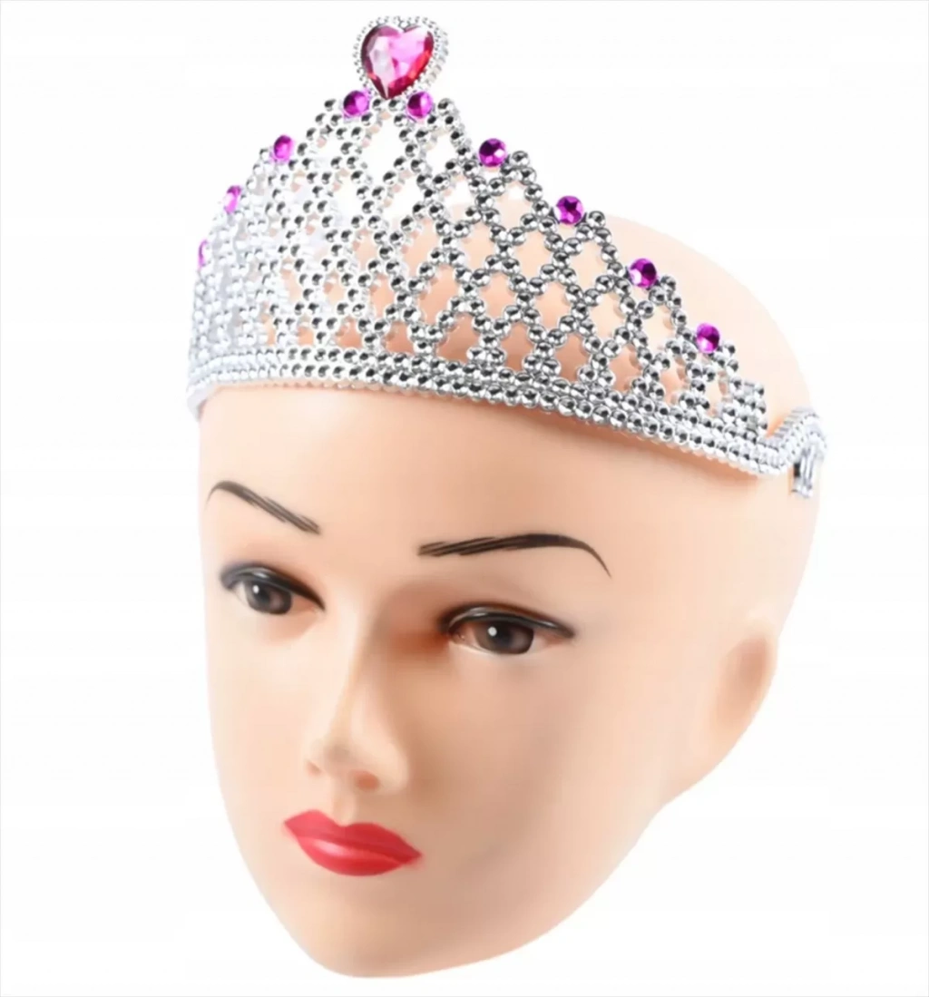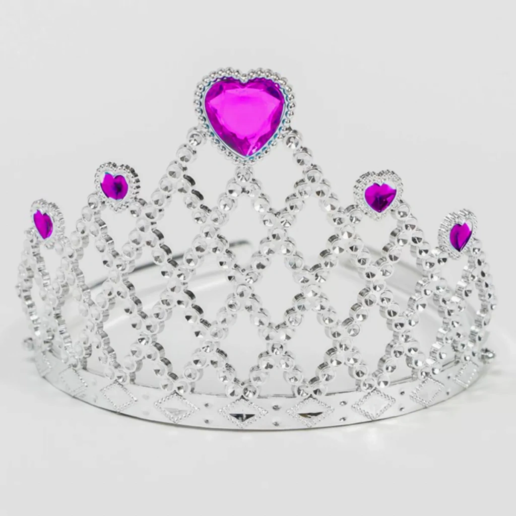 Bu taç, gümüş renginde ve fuşya kalp süslemesi ile zarif ve modern bir tasarıma sahiptir. Taçtaki parıldayan taşlar ise masalsı bir atmosfer yaratarak küçük prensesinizin göz kamaştırmasını sağlayacaktır.