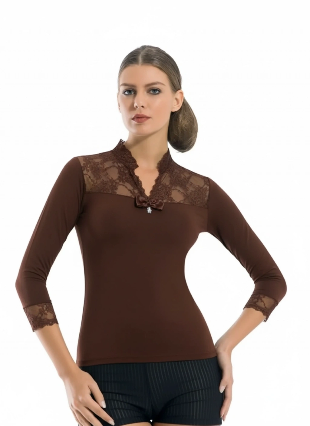 Geniş Dantelli Patlı Uzun Kollu Elestan Bluz 2176