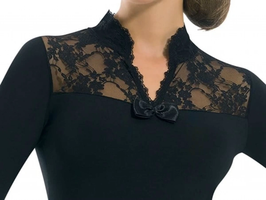 Kadın Siyah Kare Yaka Dantelli Uzun Kollu Crop Top Bluz