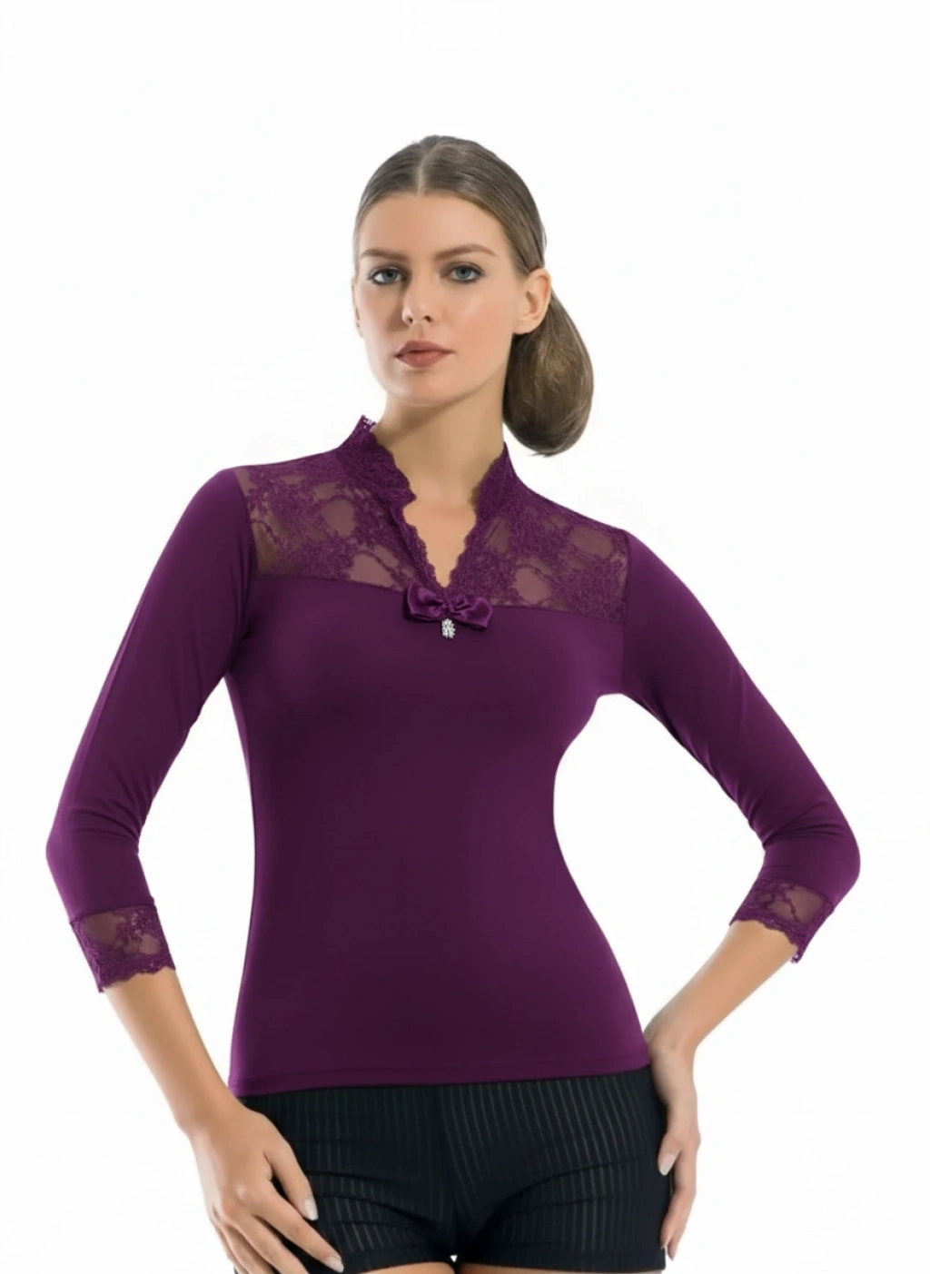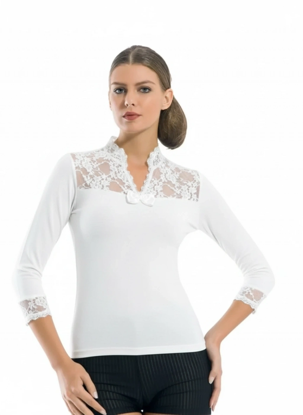 Berrak Dantelli Yarım Kollu Kadın Bluz Elestan
