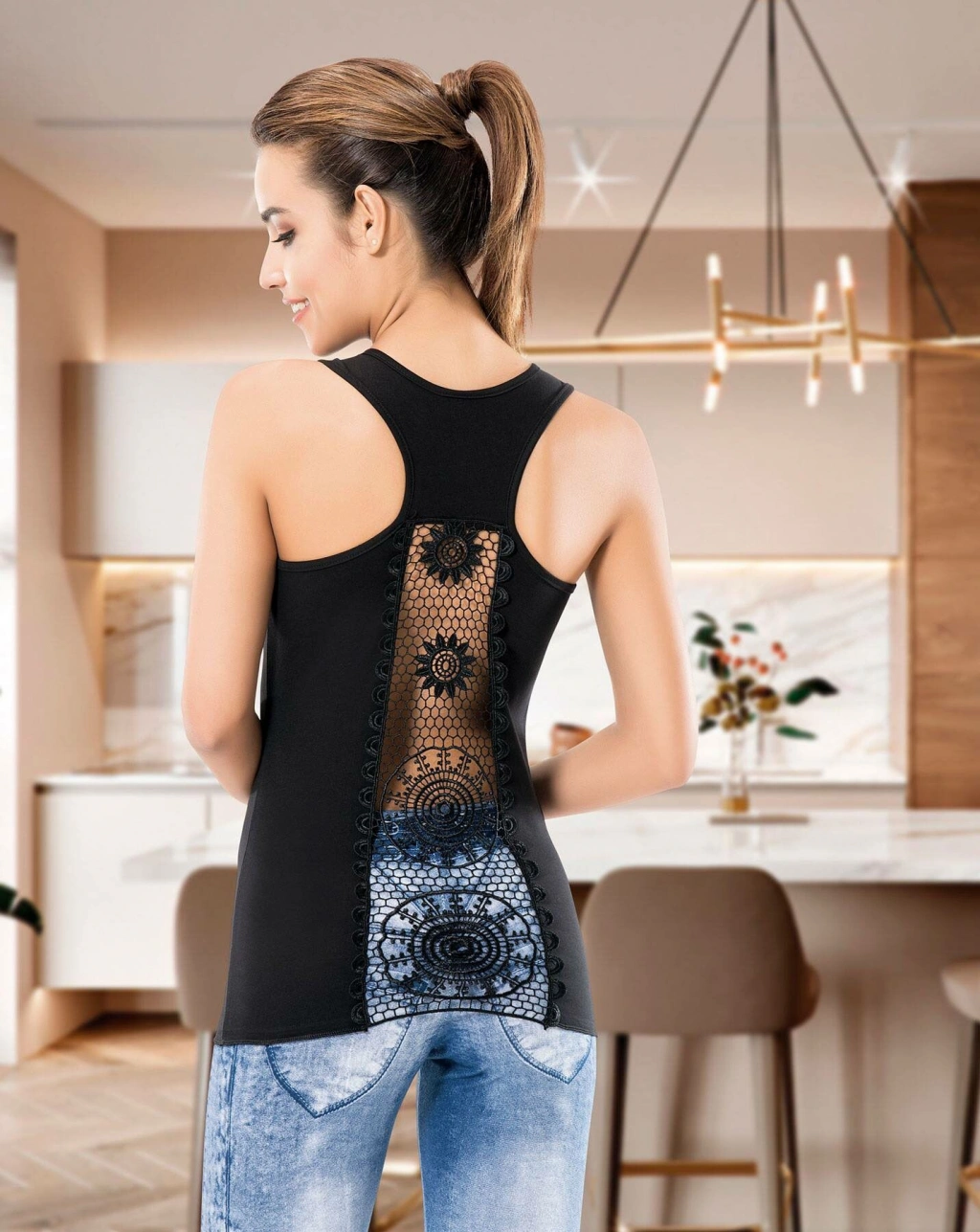 Yeni sezon arka kısımlarından güpür dantelli sporcu kadın atlet modelidir.